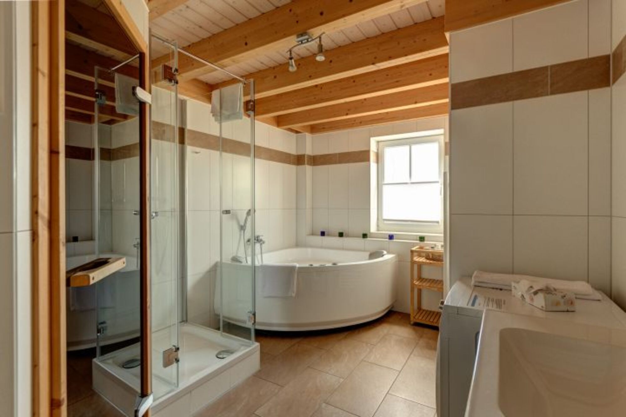 Ein Duschbad und ein Wellnessbad mit Sauna und Whirlpool lassen erst gar keinen Stress aufkommen und garantieren wohltuende Entspannung- Badesalze und Saunaaufgüsse stehen bereits bereit und sind im Mietpreis inbegriffen.