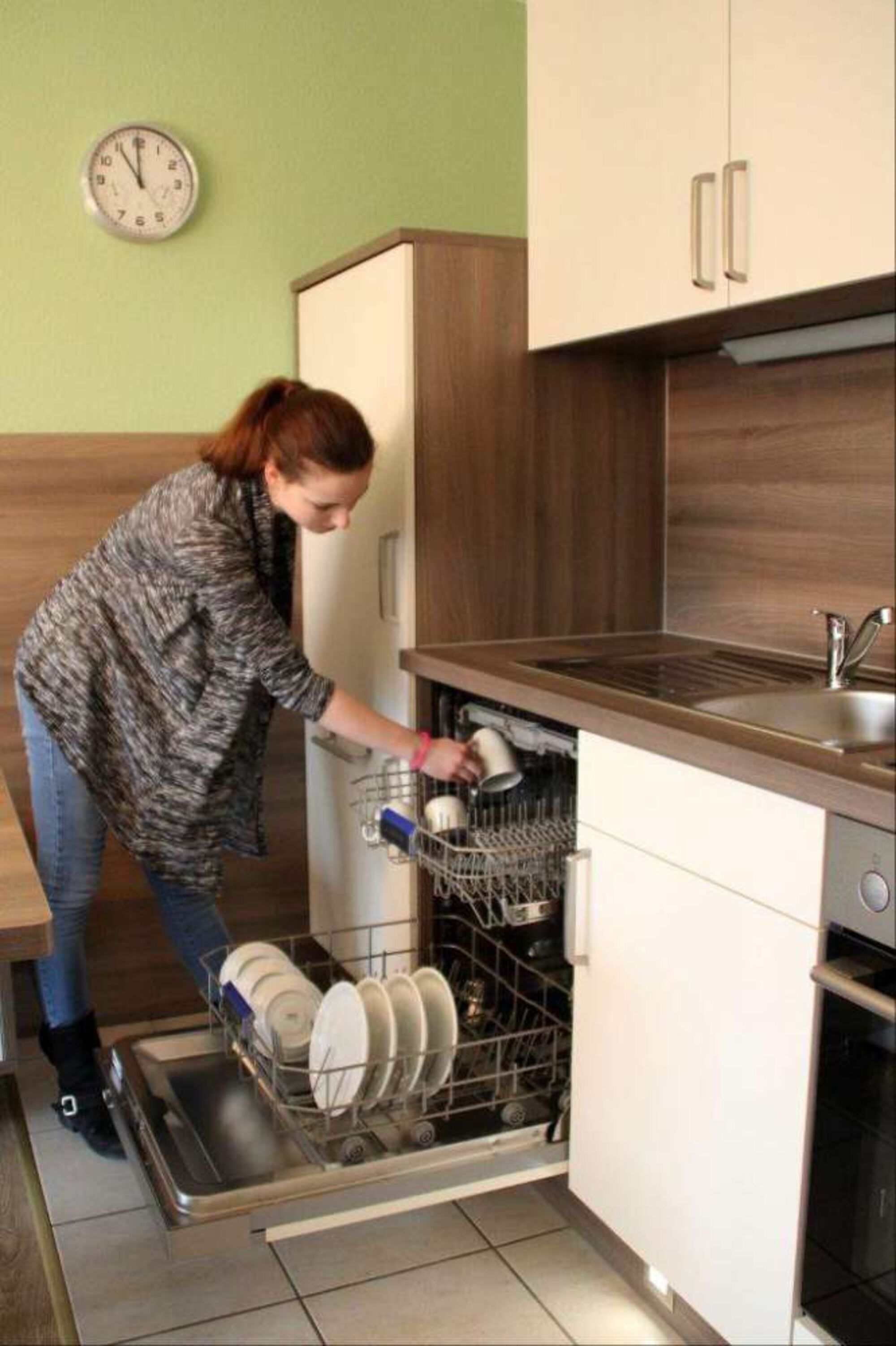 Die Küchenzeile der Unterkunft ist komplett ausgestattet und lässt Sie auch im Urlaub auf keinen Kochkomfort verzichten. Unter anderem stehen Ihnen hier eine Kaffeemaschine, eine Nespressomaschine, eine 4-Platten-Herd mit Heißluft-Backofen, eine Mikrowelle, einen Wasserkocher, einen Toaster und einen Kühlschrank mit 3***-Gefrierfach. Die Spülmaschine nimmt Ihnen anschließend die Abwascharbeiten ab.