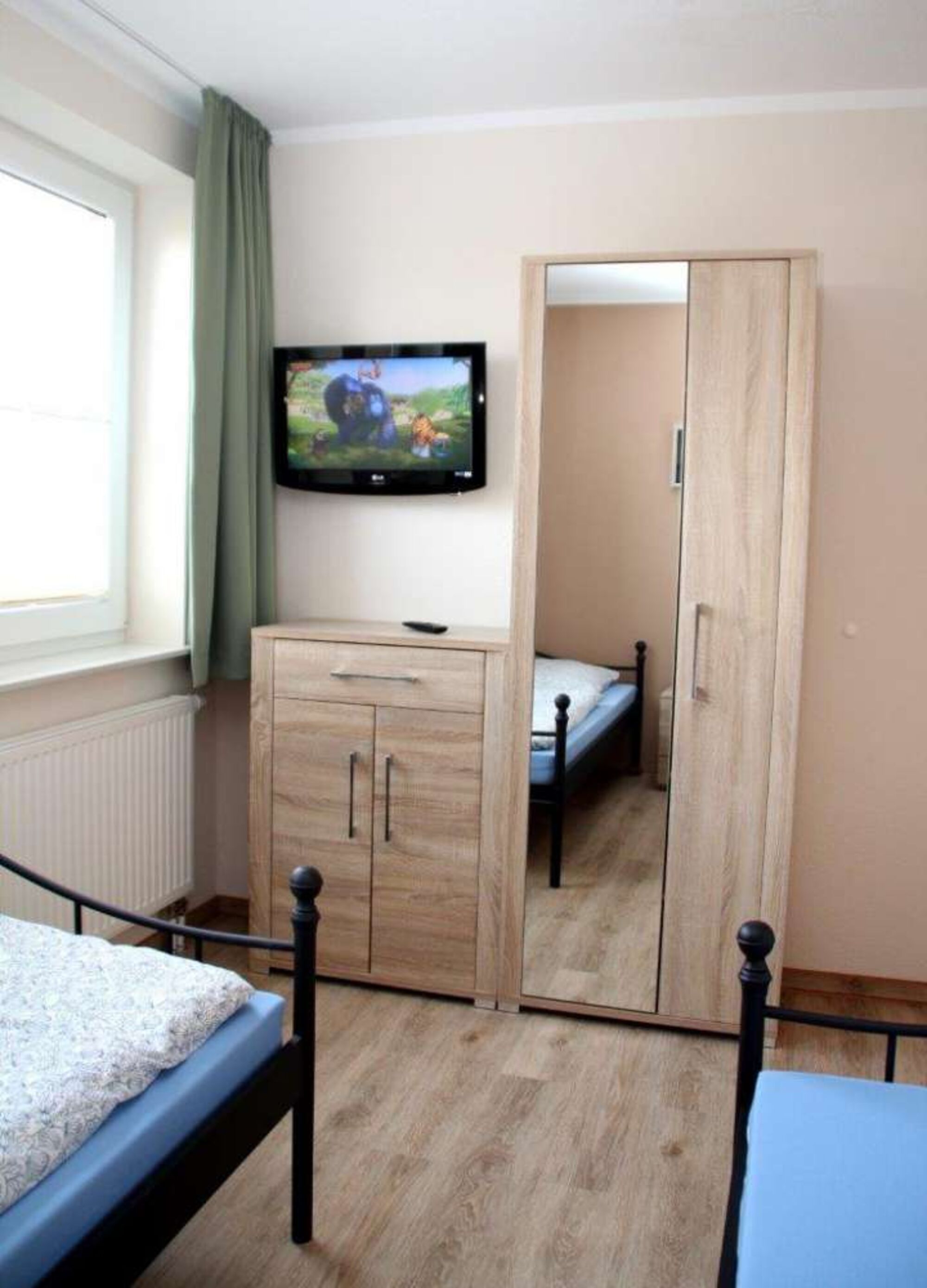 Für einen erholsamen Schlaf aller Gäste sorgen die zwei separaten Schlafräume. Das erste Schlafzimmer ist dabei mit einem Doppelbett, einem Flachbild-TV sowie reichlich Stauraum für Ihr Gepäck ausgestattet. Das Zweite verfügt dagegen über zwei gemütliche Einzelbetten, auch einen Flachbild-TV und reichlich Stauram.