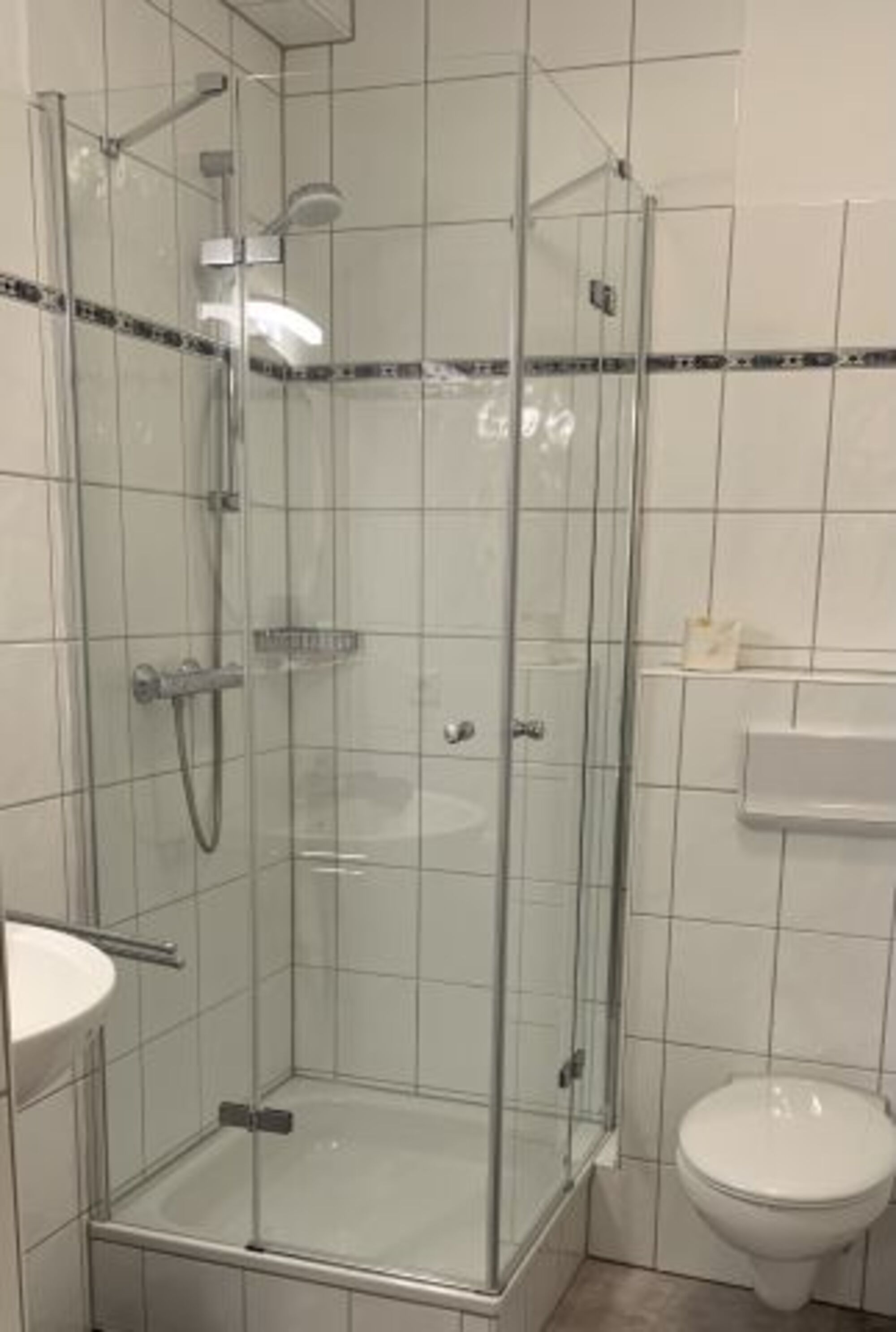 Für eine stressfreie Morgenroutine sorgt das 2022 komplett renovierte Badezimmer mit Dusche, WC und Waschtisch.
