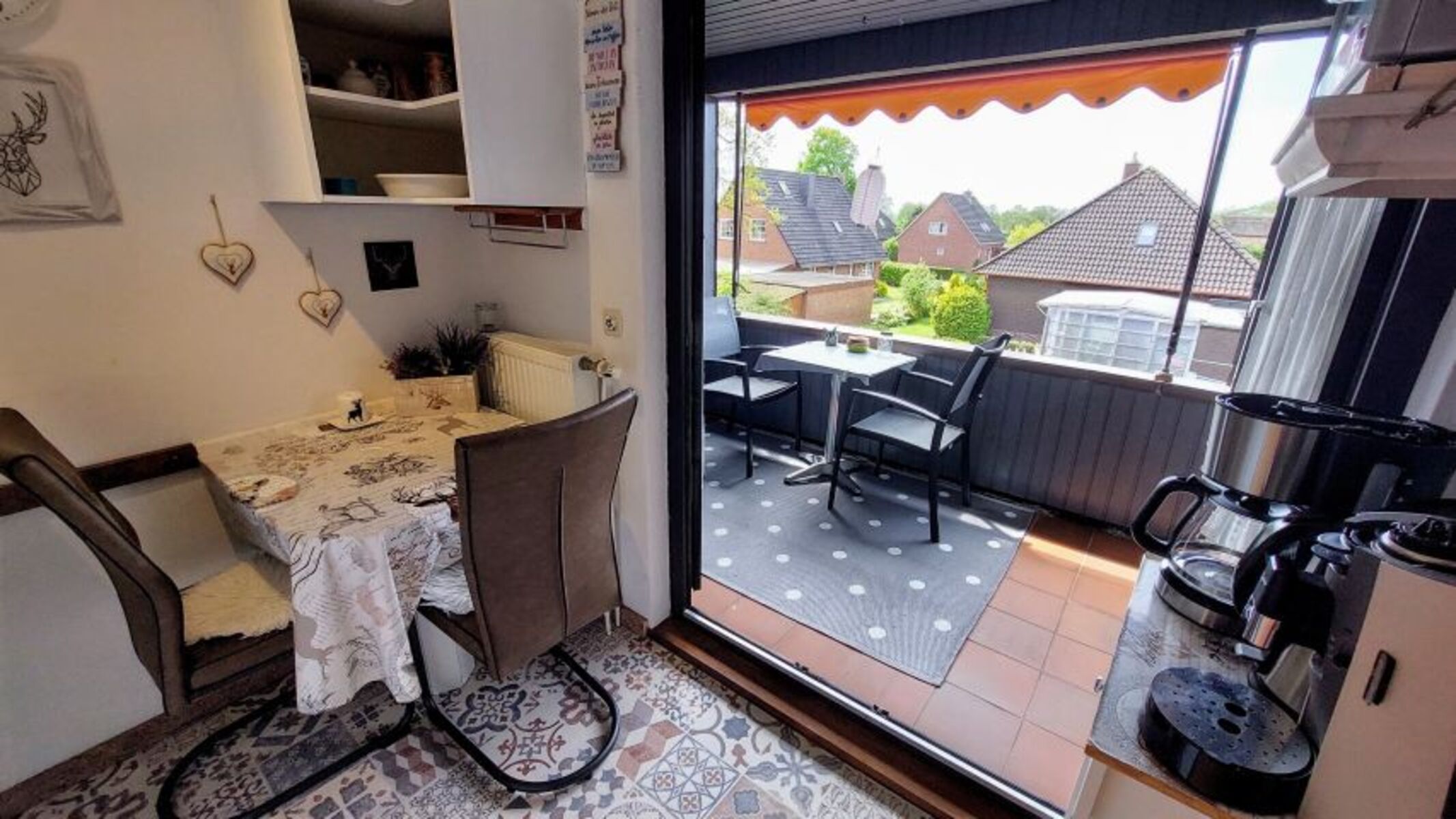 Ob Urlaub als Single oder Paar gerne mit 1 Kind bis ca. 7 Jahre + 1 kleiner Hund bis Kniehoch bzw. 10 Kg. Unsere moderne 1,5 Zimmer-Wohnung Stella ist komplett eingerichtet mit Dusche und WC, Küche mit Essplatz, Kaffeemaschine, Toaster, Wasserkocher, 2-Platten Herd (+2 Zusatzplatten in der Wohnung sind vorhanden), Mini Backofen, Kühlschrank mit Gefrierfach, Heißluft Fritteuse. Es sind 2 Betten vorhanden mit den Maßen 140 x 190 und 100 x 200. Die Wohnung hat einen überdachten Süd Balkon mit Markise und Blick auf unseren Koi Teich und die Geest Landschaft Richtung Norddeich/ Westermarsch. Von hier aus sind es ca. 10 Fahrrad Minuten zum Badestrand Norddeich (mit tollem Hundestrand) oder in die schöne Altstadt von Norden. Gerne holen und bringen wir Sie auch zum 2 Km entfernten Bahnhof Norden. Wenn Sie mit dem Auto anreisen, haben wir am Haus einen Stellplatz für ihr Fahrzeug, auch ein abschließbarer Fahrradschuppen sowie 1 Tischtennisplatte ist vorhanden. Stabiles WLAN inklusive. Einem entspannten Urlaub steht somit nichts mehr im Wege und von den Heilkräften des Meeres und der jodhaltigen gesunden Luft zehren Sie noch viele Wochen.Die Betten sind bei Anreise bezogen und Handtücher liegen bereit. Dieser Service ist im Mietpreis inklusive.