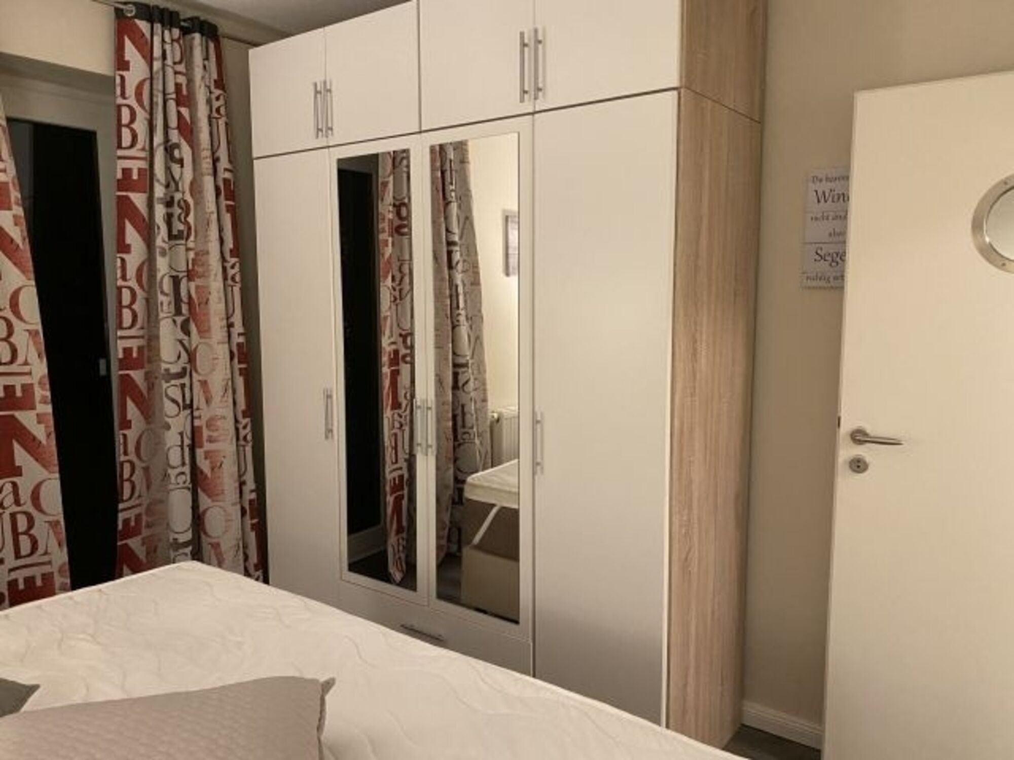 Im Schlafzimmer sorgt ein komfortables Boxspringbett für behaglichen Schlaf. Ihre persönlichen Sachen finden im geräumigen Kleiderschrank platz. Die Wohnung ist sowohl mit einem Schlüsselsafe, als auch einem Wohnungssafe ausgestattet. Im Badezimmer finden Sie eine Dusche und einen Einbauwaschtisch mit Spiegelschrank sowie einen Handtuchtrockner.