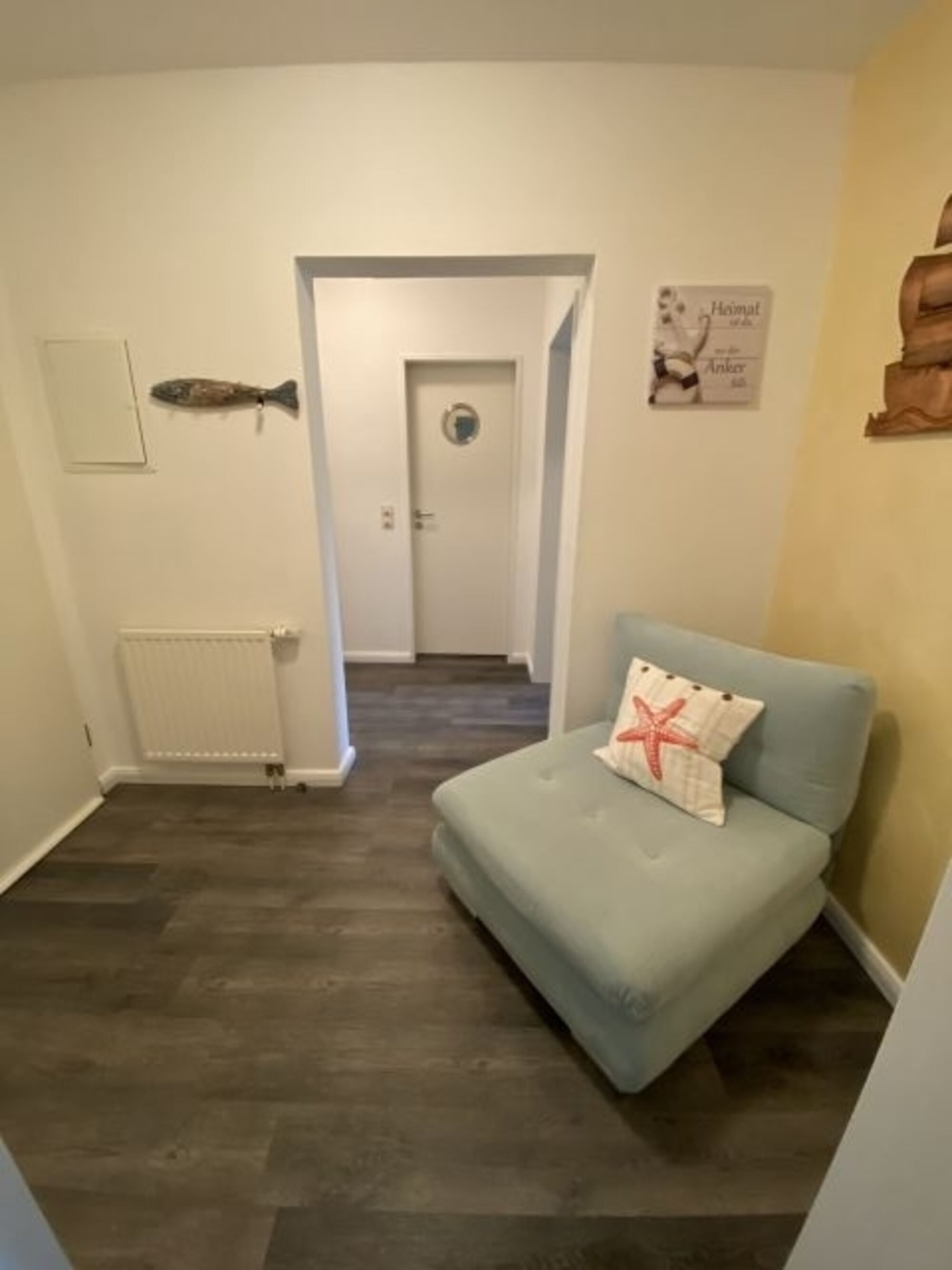 MEERzeit eine liebevoll ausgestattete Ferienwohnung stellt sich vor:Die nach Komplettrenovierung gerade fertiggestellte 2 Zimmerwohnung liegt ca. 200 m vom Nordseedeich entfernt. Auf dem Spaziergang zum Wasser sehen Sie die großen ‚Pötte‘ auf ihrem Weg zum und vom Hafen der Seestadt Bremerhaven ein- und auslaufen.