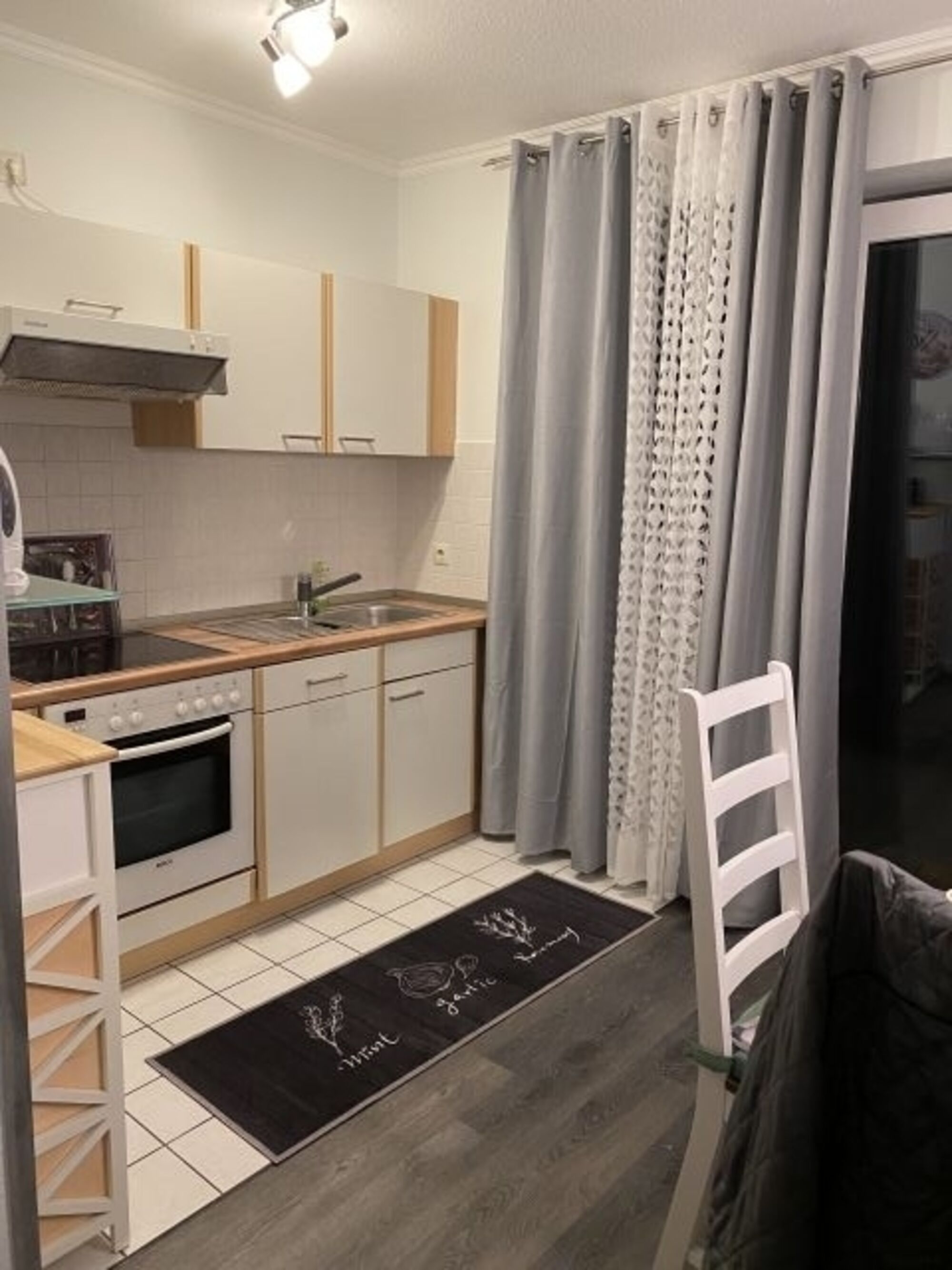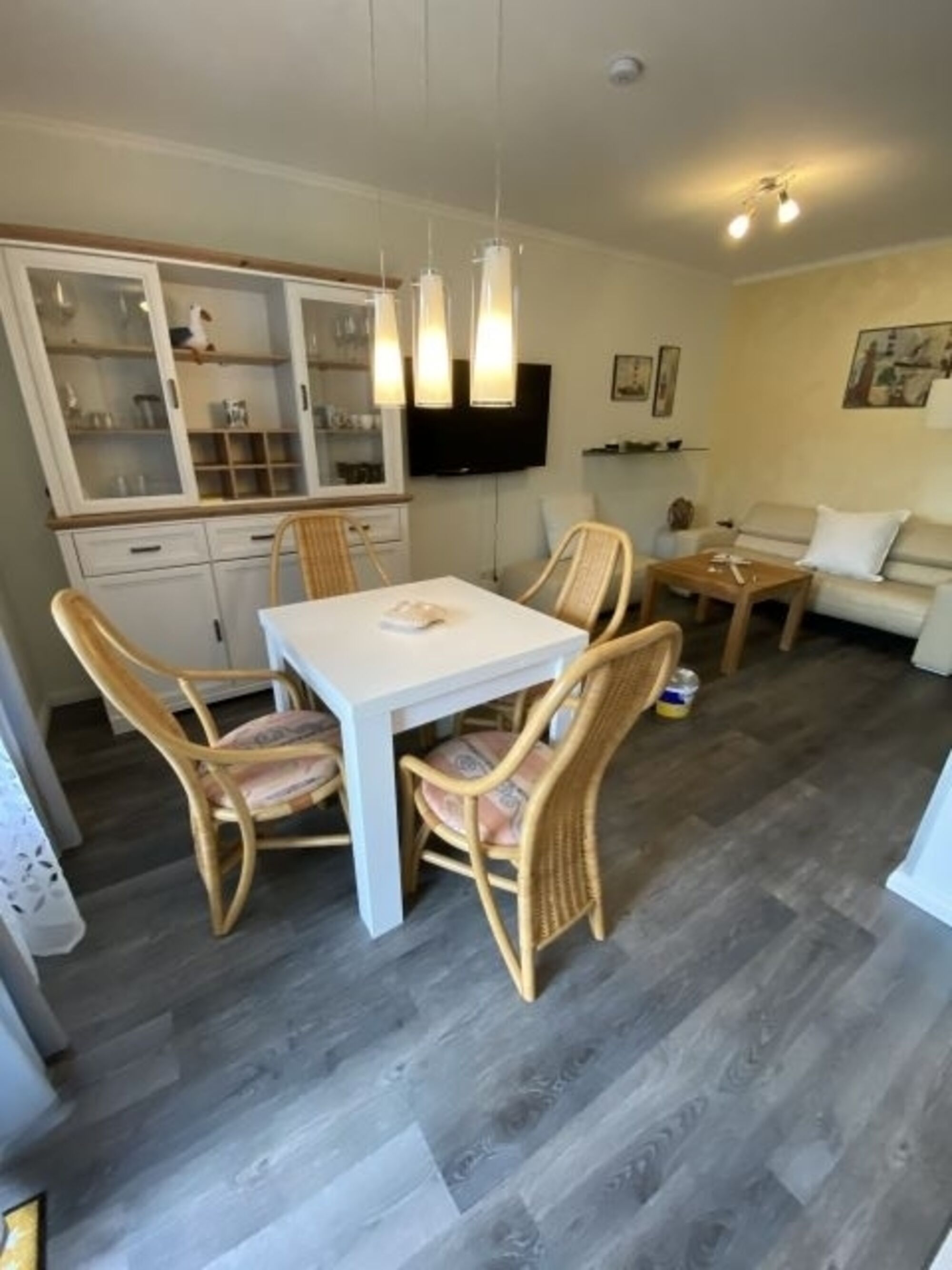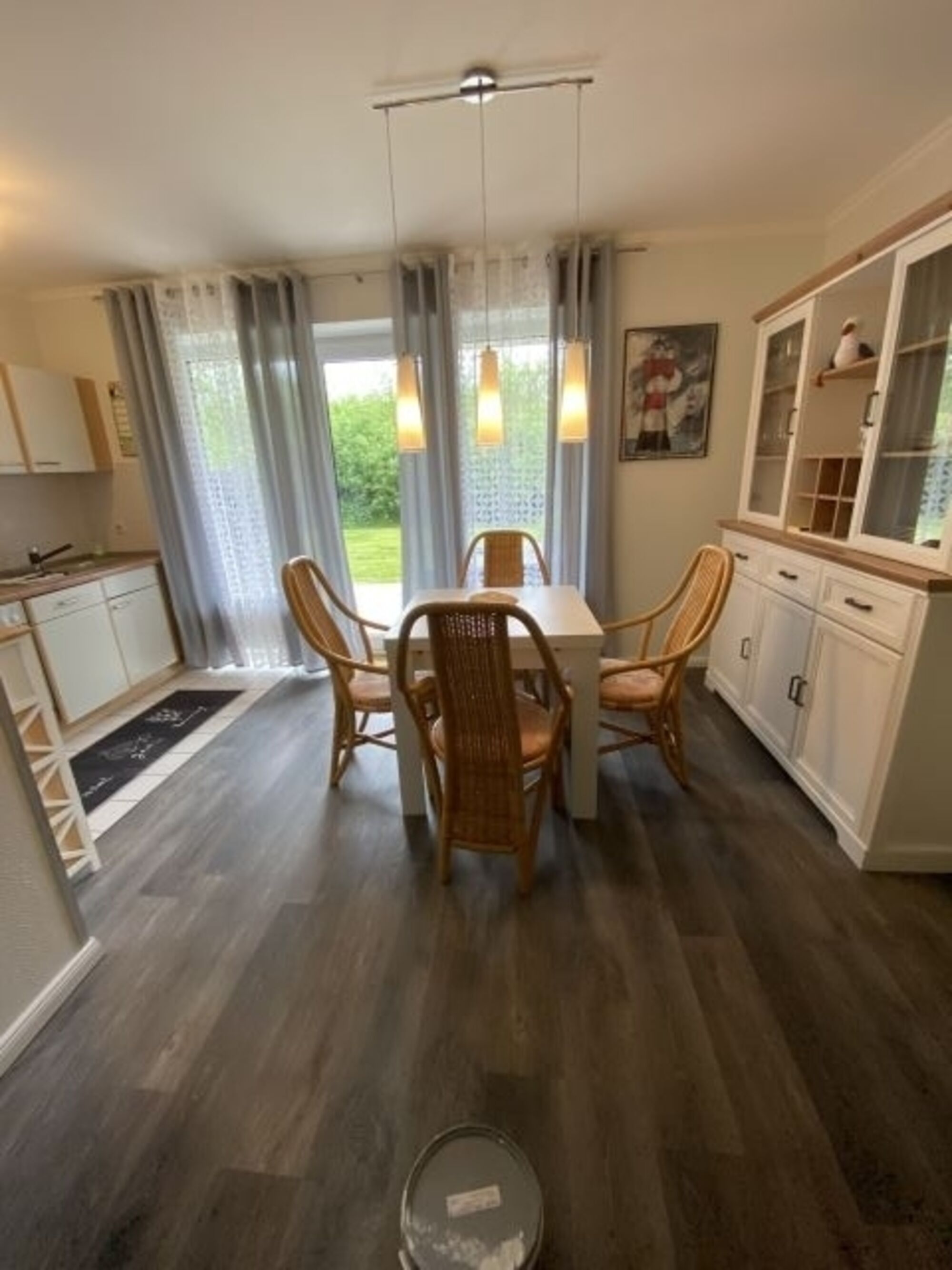 Den Esszimmertisch kann man ausziehen, falls Gäste Sie in den Ferien besuchen möchten. Die Einbauküche ist komplett ausgestattet: Mit Geschirrspüler, E-Herd mit Ceranfeld, Kühlschrank, Mikrowelle, Toaster, Kaffeemaschine und Eierkocher können Sie sich ‚wie zuhause‘ fühlen.