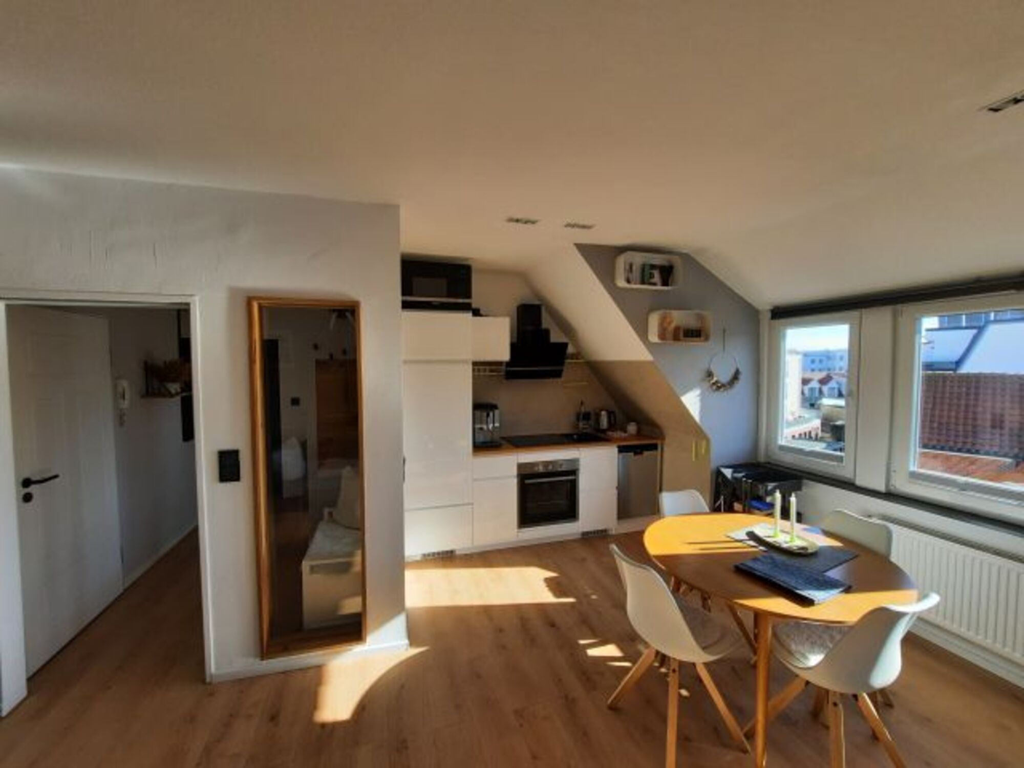 3 Sterne DTV-Klassifizierung (Deutscher Tourismusverband)Möwennest by DeJu ist ein lichtdurchflutetes 2-Raum-Appartement, welches sich auf der Wilhelmstr. befindet. Die Wohnung wurde Mitte 2024 vollumfänglich renoviert. Die Wilhelmstr. zeichnet sich durch eine ruhige, aber dennoch sehr zentrale Lage aus.