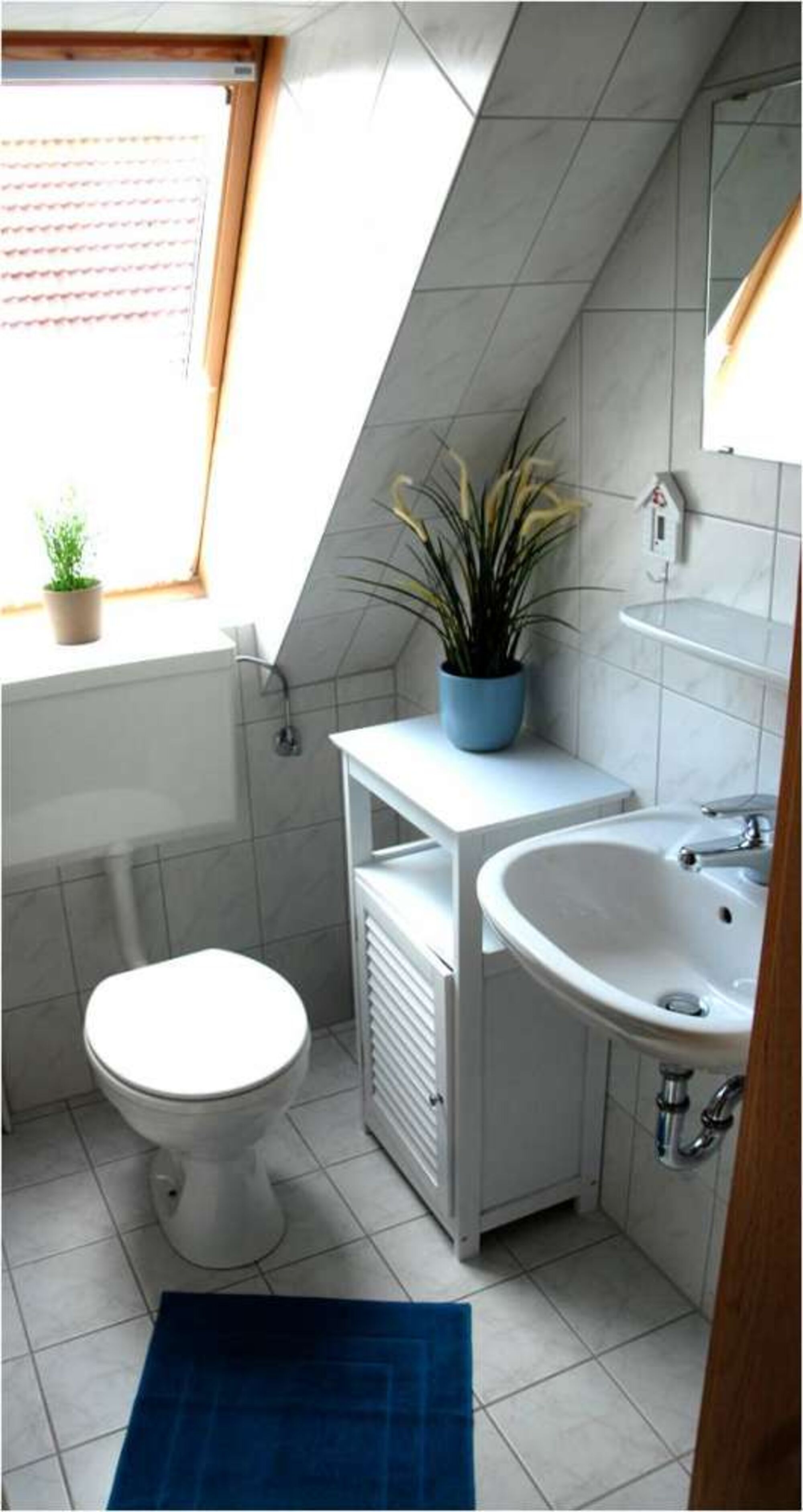 Im Obergeschoß befinden sich das Schlafzimmer 'Klabauterkiste' mit zwei Einzelbetten, Spielzeug für Ihre Kinder und einem CD-Player. Das kleine maritime Bad ist ausgestattet mit Dachfenster, Dusche und WC. Im Schlafzimmer 'Auszeit' mit großem Doppelbett (1,80 m) und Kleiderschrank steht zudem ein Babybett (inkl. Kissen- & Oberbettinlet). Der Schaukelstuhl lädt dazu ein mal wieder ein gutes Buch in Ruhe lesen zu können oder Ihr Baby in den Schlaf zu wiegen. Die Treppe zum Erdgeschoss ist durch ein Treppenschutzgitter abgesichert.