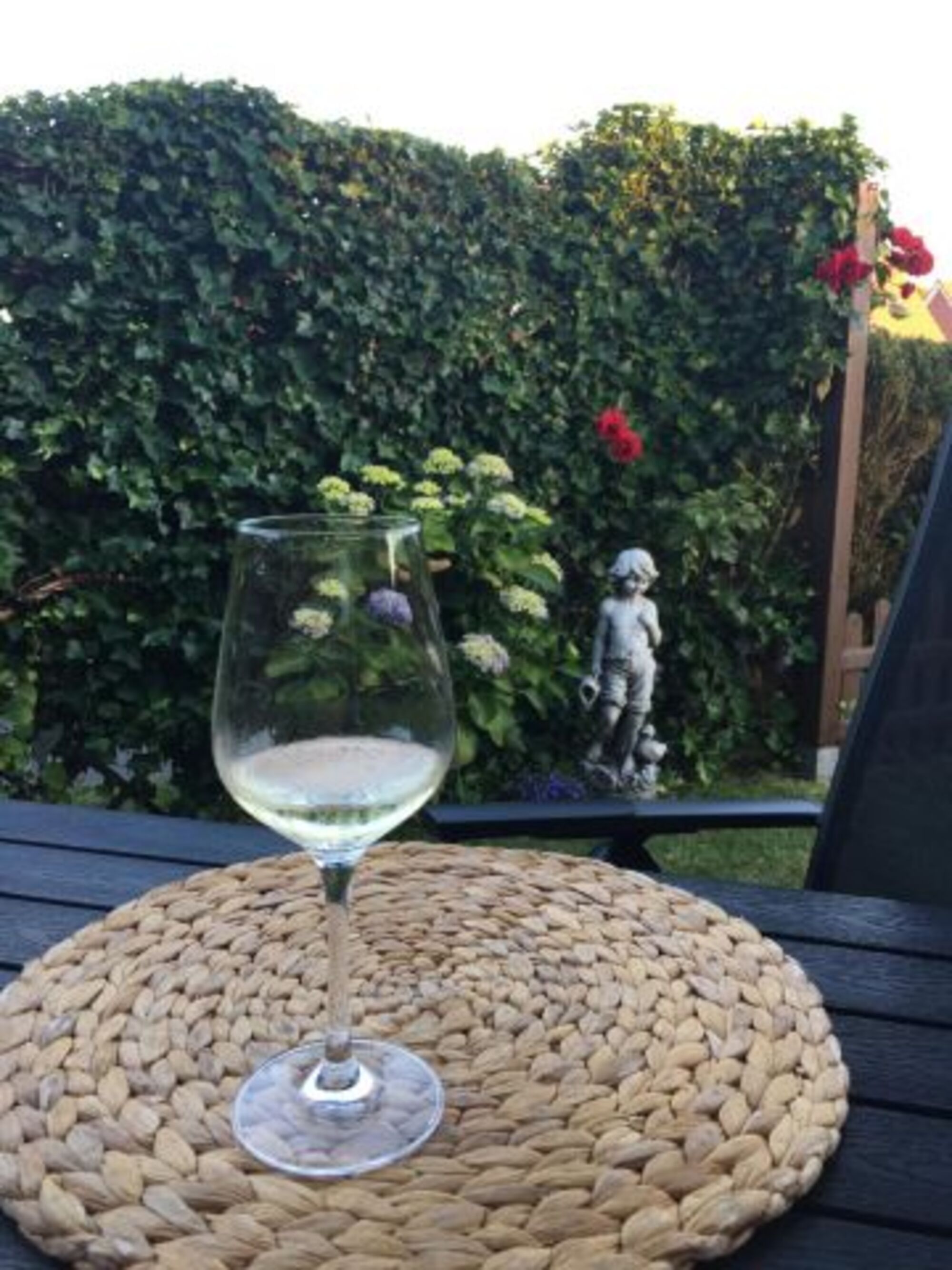 Die nach Süd-West ausgerichtete Terrasse mit dem Strandkorb lädt zum Verweilen ein.