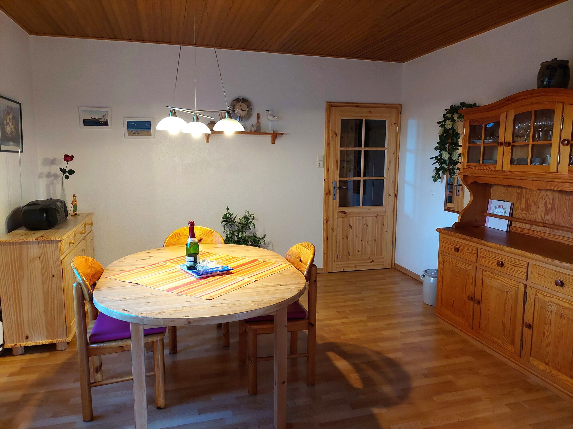 Die gut eingerichtete Ferienwohnung Kutscherhuus überzeugt zwar durch ihren günstigen Preis, doch das heißt nicht, dass unsere Urlauber auf Komfort und Gemütlichkeit verzichten müssen. Im Gegenteil, die Ferienwohnung bietet alles, was sich ein Gast für den erholsamen Urlaub nur wünschen kann, egal ob er sich als Single erholen oder was erleben möchte, ob ein Paar von einem romantischen Kuschelwochenende träumt oder ob Senioren eine erholsame Abwechslung vom Alltag suchen, ohne dafür viel Anstrengung auf sich nehmen zu müssen.Sie alle werden im Kutscherhuus herzlich willkommen geheißen und mit unserem Service-Angebot verwöhnt. Die Ferienwohnung liegt leicht zugänglich im Erdgeschoss und ist sehr praktisch eingerichtet. Neben dem Wohnzimmer mit Fernseher gibt e ein separates Esszimmer und zwei Schlafzimmer für insgesamt fünf Personen. Auch ein Abstellraum ist vorhanden.