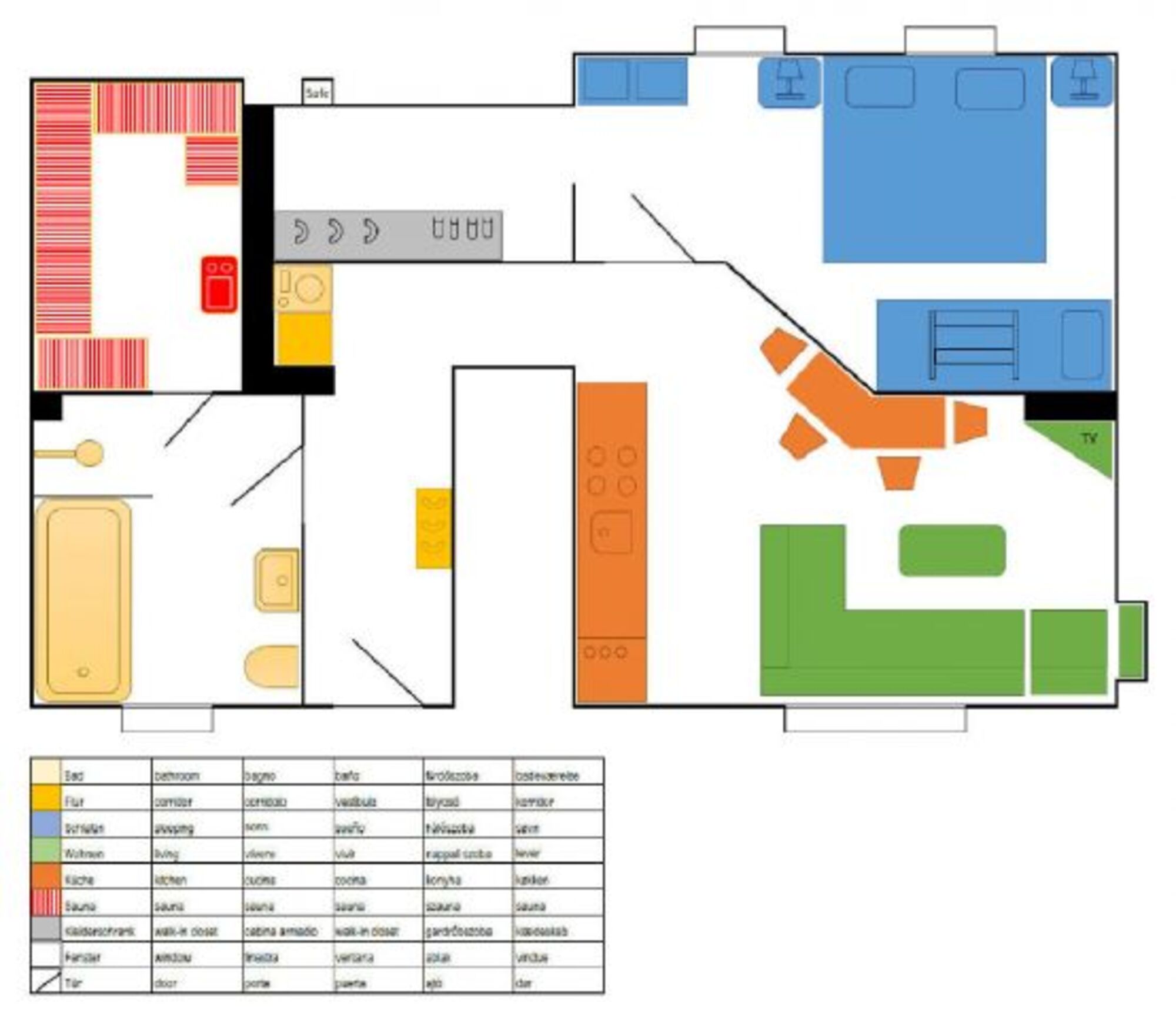 Unsere barrierefreie Ferienwohnung wurde im Jahr 2015 komplett neu ausgebaut und befindet sich im Erdgeschoß und hat eine Fläche von 64 m². Sie haben eine Abstellmöglichkeit für Kinderwagen in der Diele. Die Küche ist ausgestattet mit Backofen, Ceranfeld, Kühlschrank mit Eisfach, Mikrowelle, Wasserkocher, Toaster, Kaffeemaschine und Geschirrspülmaschine. Ihnen stehen ein neuer 39" Full HD LED-TV mit Sat-Empfang, Blueray-Player, Stereo-Anlage, freier Internetzugang über WLAN, eine Waschmaschine und ein Radiowecker zur Verfügung. Das geräumige Bad bietet Ihnen eine barrierefreie Dusche sowie eine Badewanne.Als besondere Extras gibt es einen begehbaren Kleiderschrank und eine Sauna.