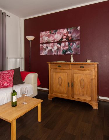 Das Apartment „Hoff“ bietet Platz für 1-2 Personen. Neben einem gemütlichen Wohnzimmer mit Kochzeile bietet es ein separates Schlafzimmer und ein Bad.