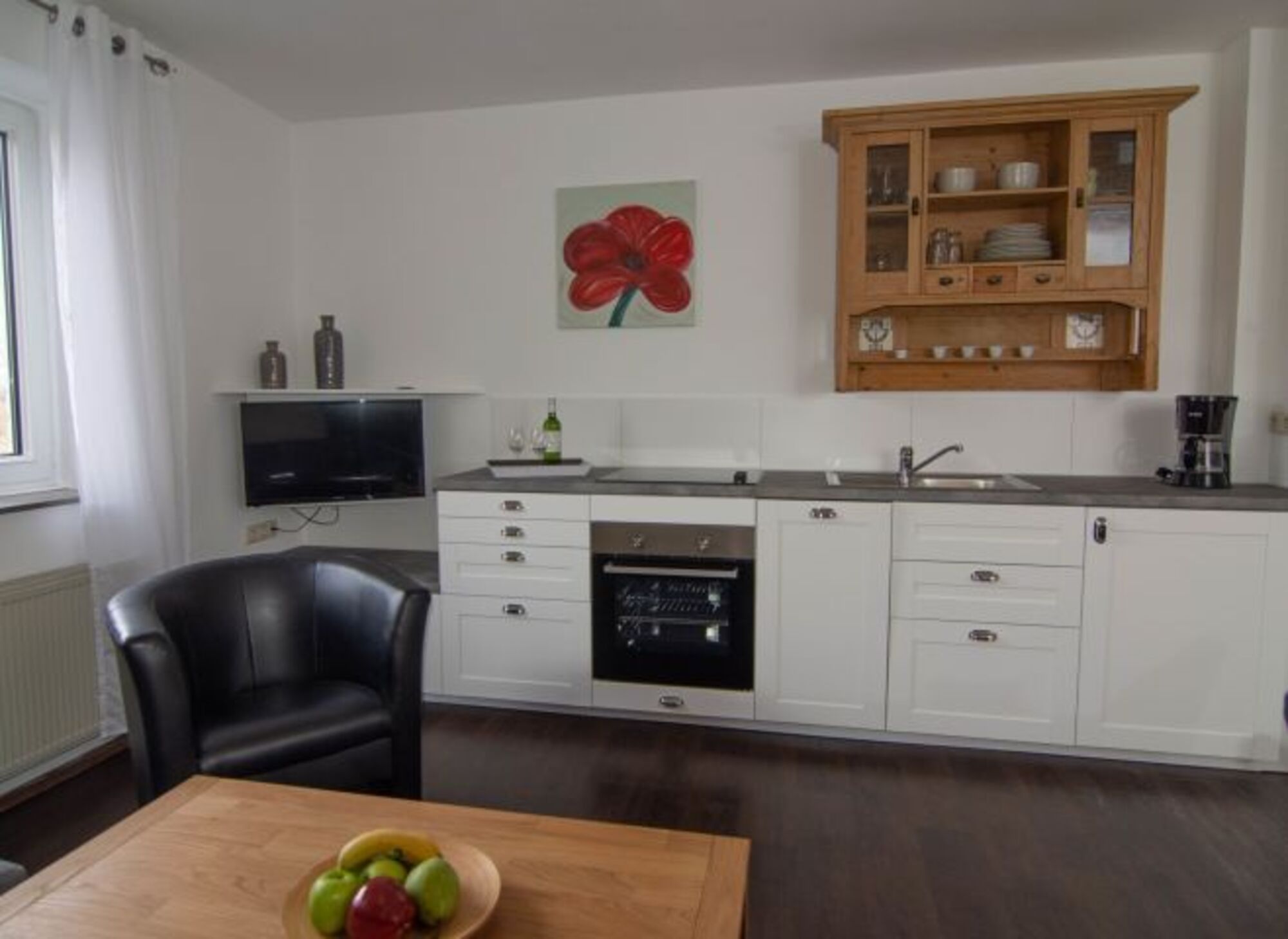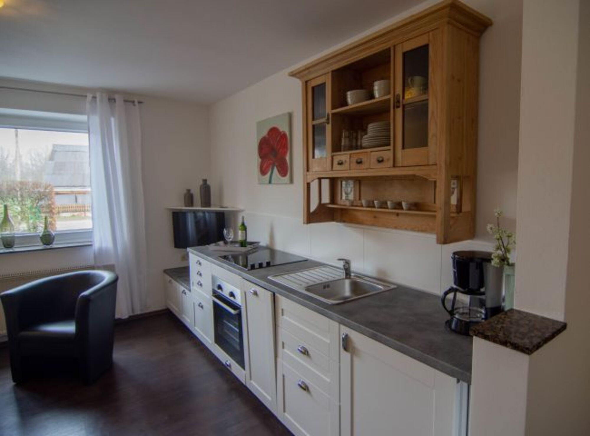 In der Wohnung „Kuweij“ [plattdeutsch; Kuhwiese] finden sie keine Kühe, sondern eine individuell eingerichtete Ferienwohnung. „Kuweij“ beinhaltet ein Wohnzimmer mit Kochzeile, ein Bad und 2 Schlafzimmer für insgesamt maximal 4 Personen. Übrigens: Schauen sie aus dem Fenster und sie sehen die Namensgeberin der Wohnung.
