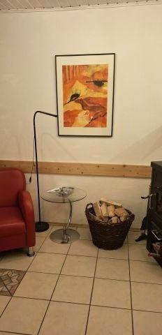 Große Wohndiele mit Schwedenofen – perfekt für gesellige Abende am Feuer
