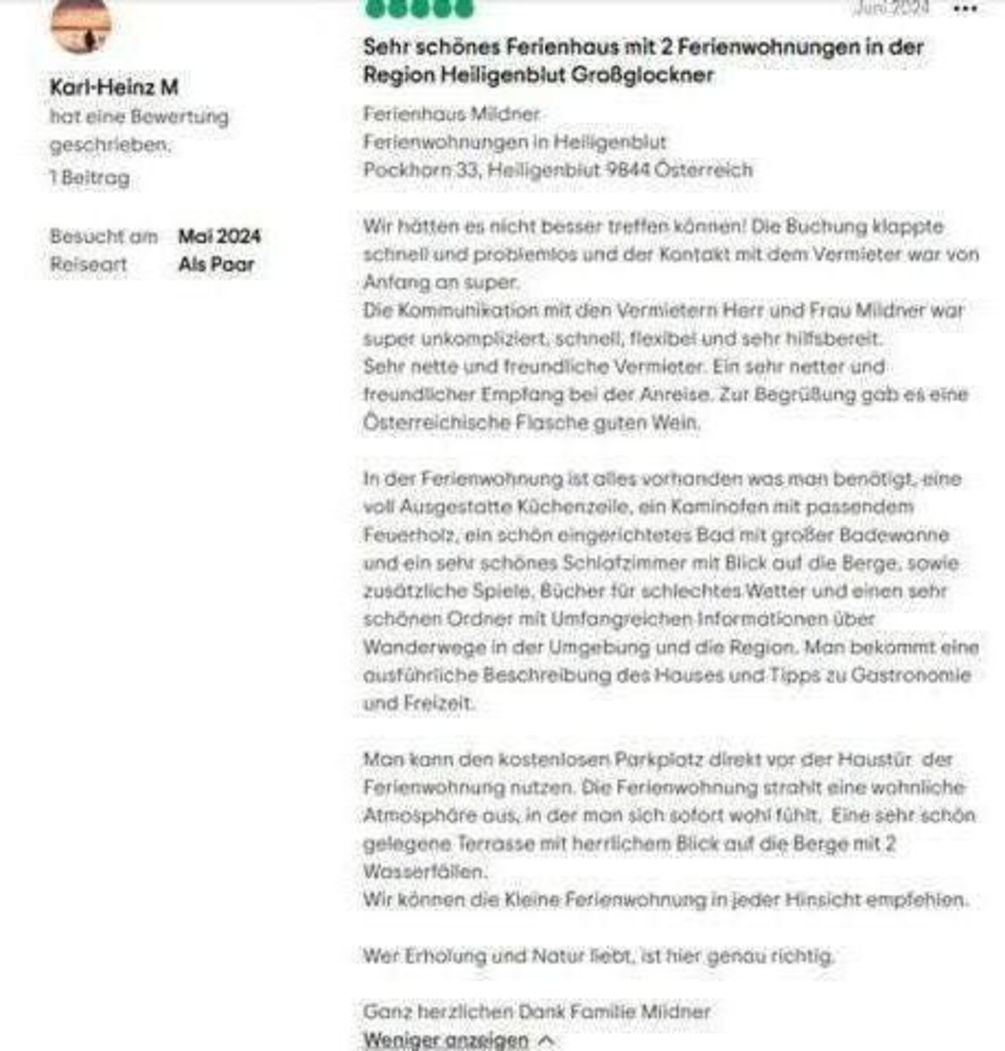 Viele Jahre sind wir hier nun hier in der herrlichen Region des Nationalpark Hohe Tauern und kennen die schönsten Plätze. Mit unseren Tipps, Wandervorschlägen und Empfehlungen sollen Sie diese wunderschöne Region kennenlernen. Sie sollen Ruhe, Entspannung und Zeit für Ihre Familie finden und sich bei uns bestens erholen. Wir werden alles tun damit Sie sich bei uns wohlfühlen und gerne zu in Ihrem 2. Zuhause wiederkommen.