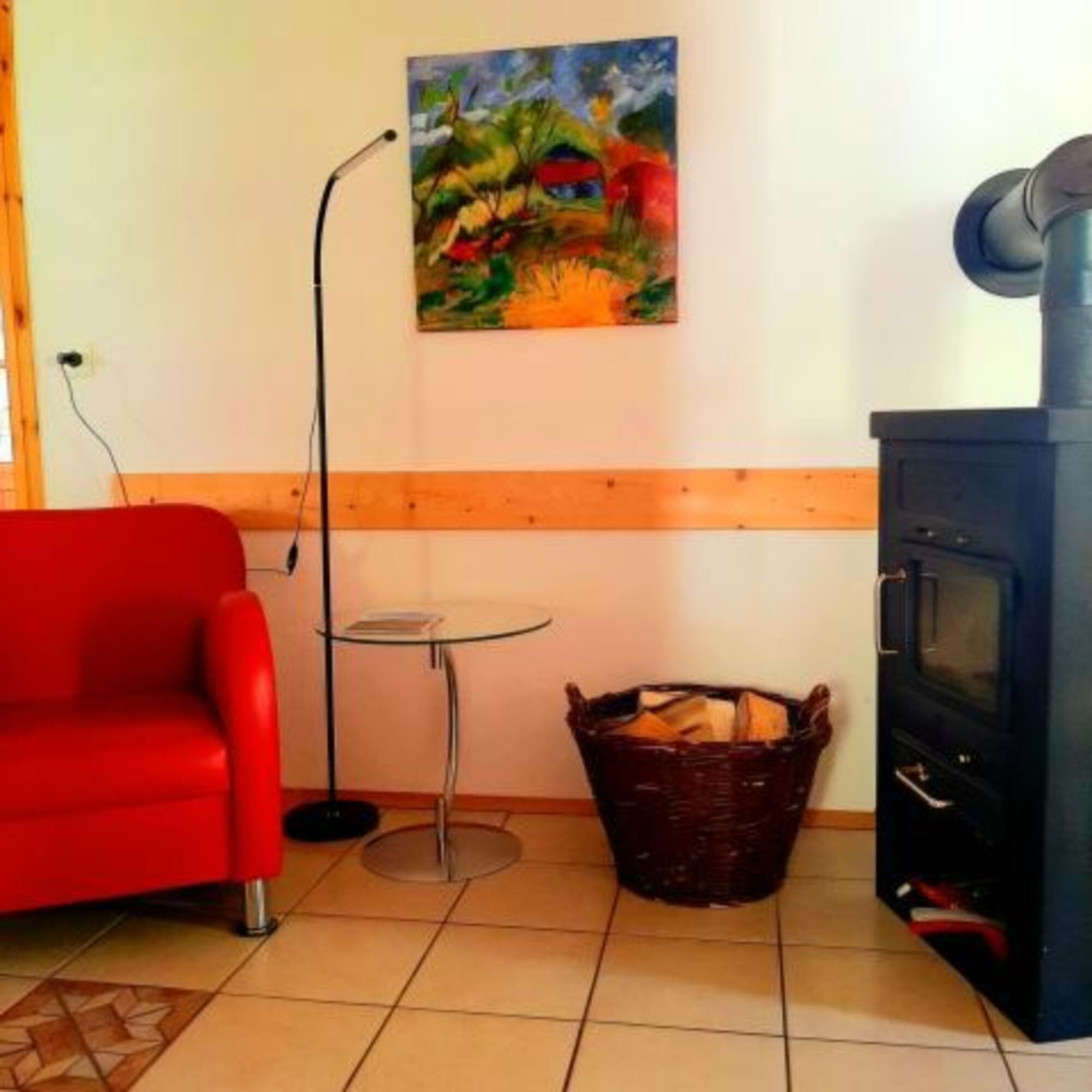 Hochwertige Ausstattung, gemütliches Wohnzimmer mit Designmöbeln & Schwedenofen