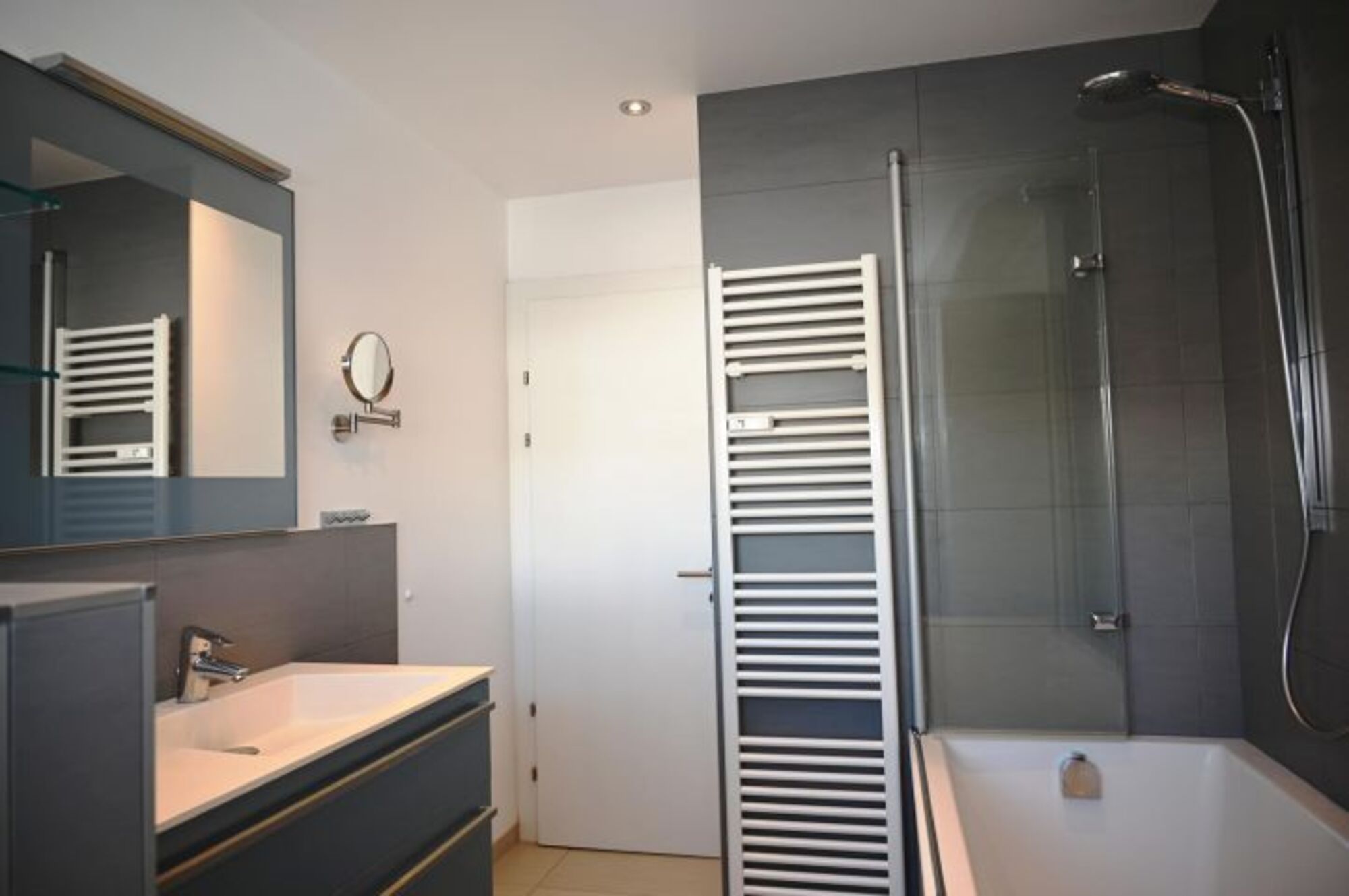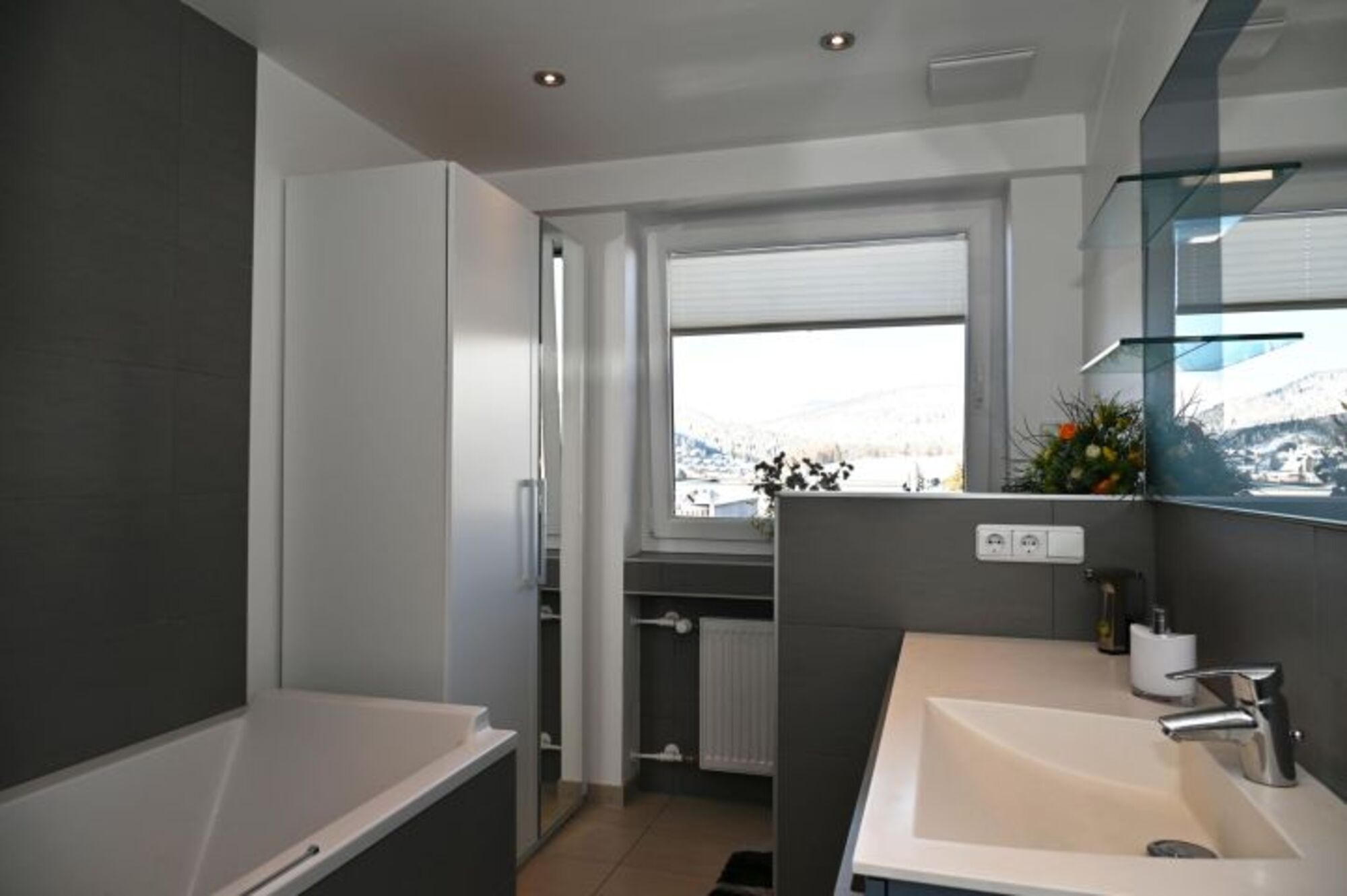 Bad: (ren. 5/2013) Raindance-Dusche, Badewanne, Handtuchwärmer, WC durch Schamwand getrennt, Waschtisch mit LED Beleuchtung, Haarfön, Kosmetikspiegel,