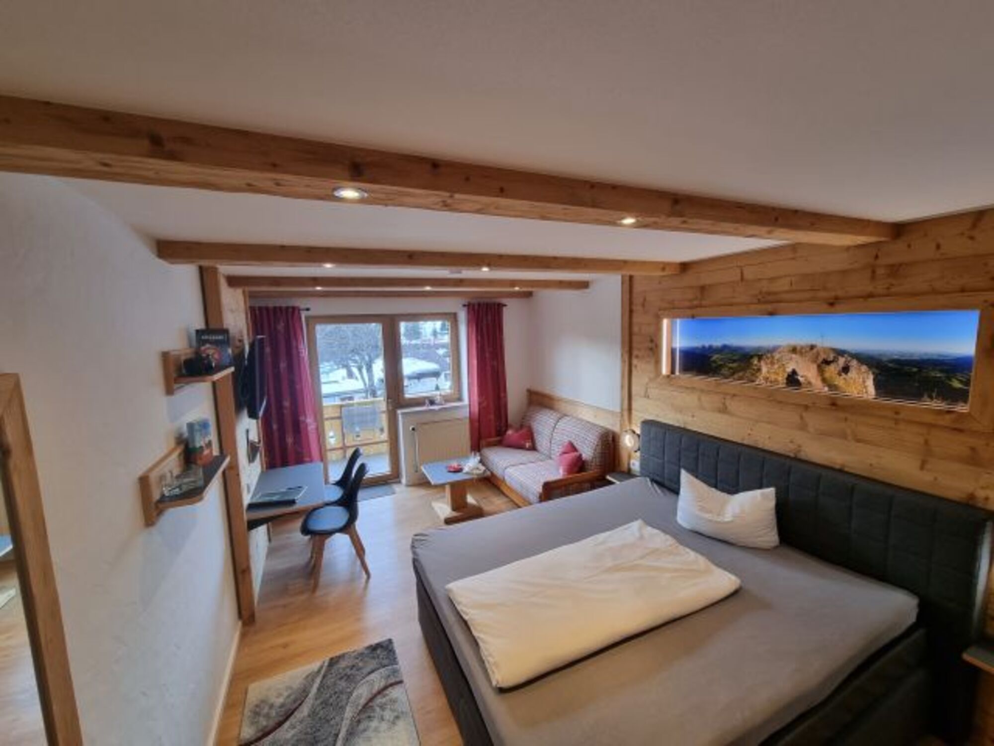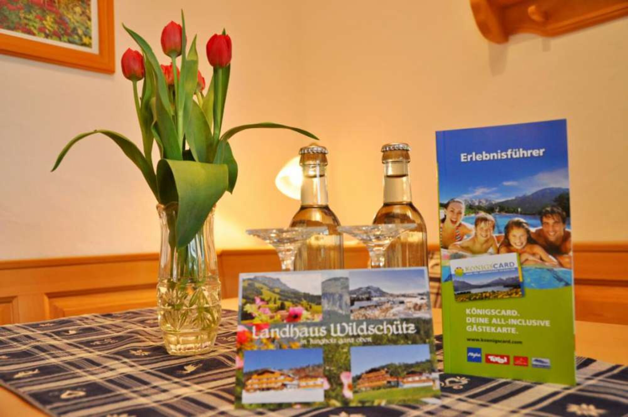 Als besondere Zusatzleistung stellt unser Haus seinen Gästen die Königscard kostenlos zur Verfügung. Mit dieser Verbundkarte erhalten Sie kostenlosen Eintritt in über 200 Freizeiteinrichtungen im Allgäu und Tiroler Land. Krönende Erlebnisse aus den Bereichen Seilbahnen und Lifte, Frei- und Hallenbäder, Museen, Skilifte, Freizeiteinrichtungen und vielem mehr machen den Urlaub fast zu einem All inclusive-Angebot!!!Unser Gastraum im Tiroler Landesstil mit den schön verzierten Schreiner-Holzdecken lädt Sie zum Frühstücksbuffet ein.