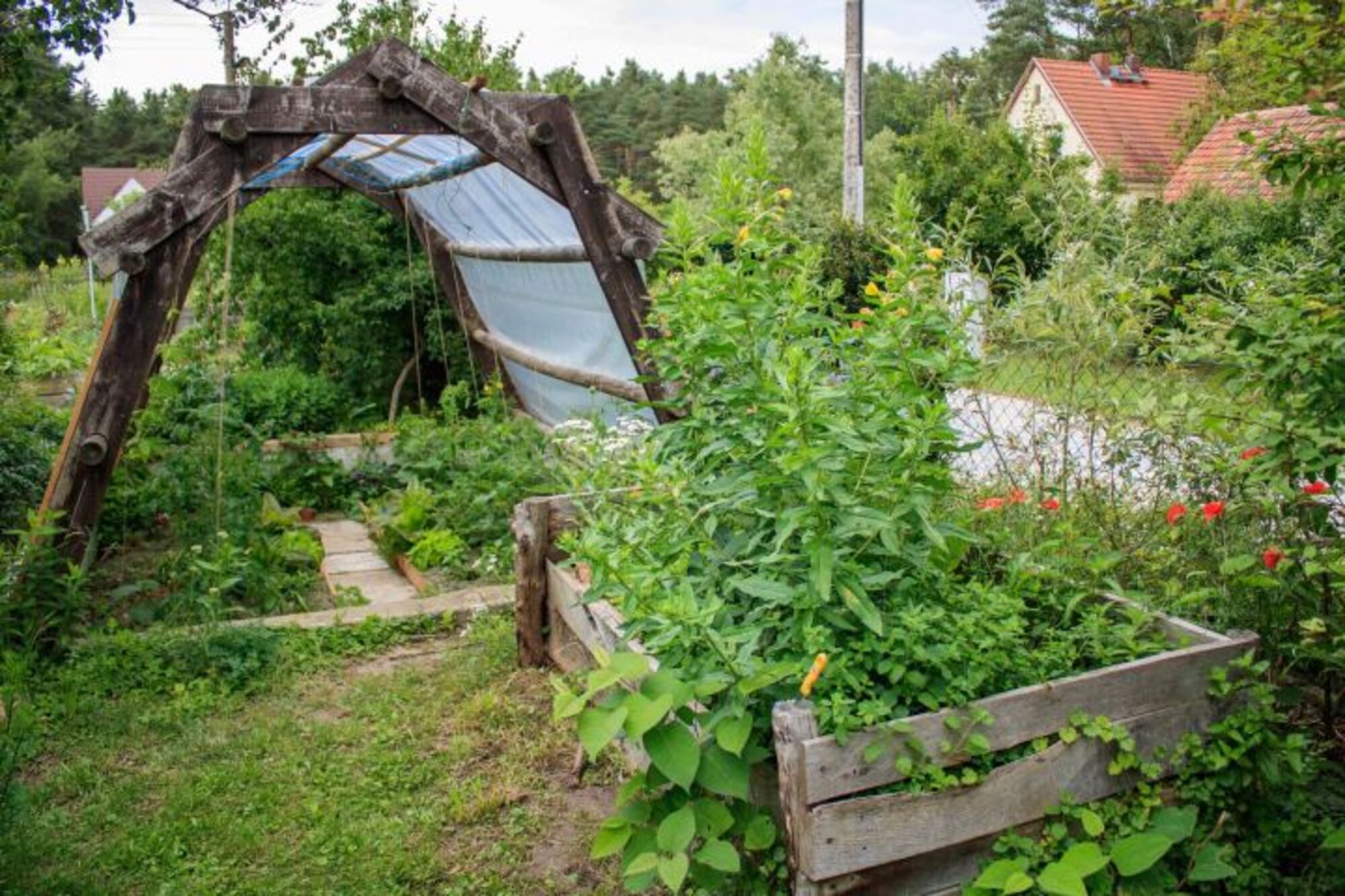 Ein neu entstehender Naturgarten um das Haus, mit Kräuter- und Gemüsebeeten kann mit genutzt werden, z.B. wenn Sie frische Kräuter für einen Tee oder noch Zutaten für Ihr Essen brauchen.