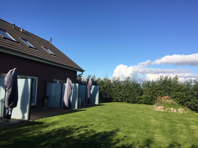 Die Liegewiese kann von allen Gästen gemeinsam genutzt.Die Hecke die den Garten umfasst, sorgt dafür, dass die Liegewiese nicht von der Straße eingesehen werden kann, außerdem ist sie ein guter Windschutz. Seit Frühsommer 2019 ist der Garten 1,20 m hoch eingezäunt .