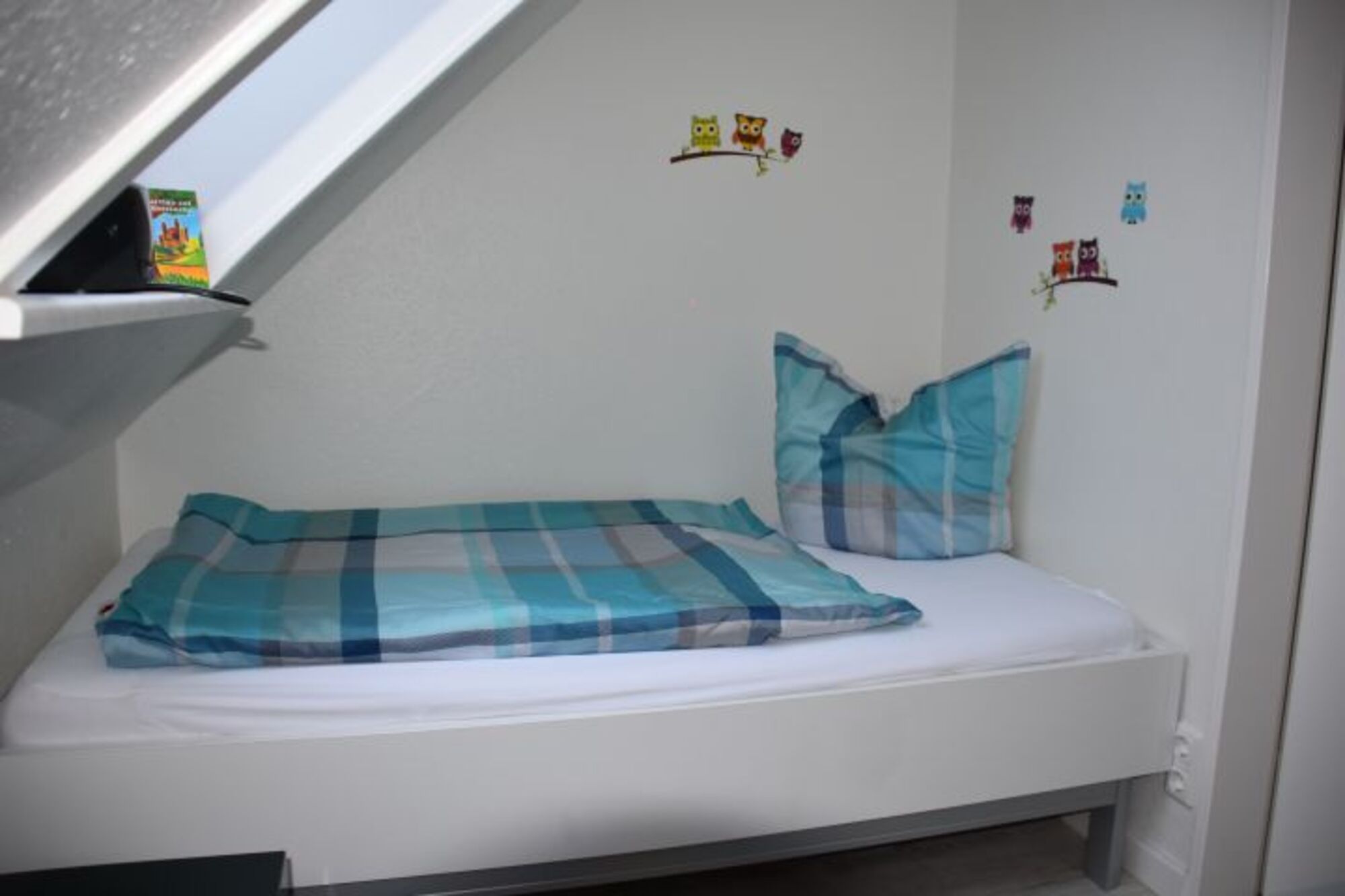 Im elterlichem Schlafzimmer befindet sich ein großes Doppelbett (180x200cm). Im Kinderzimmer ist ein Einzelbett (90x200cm)