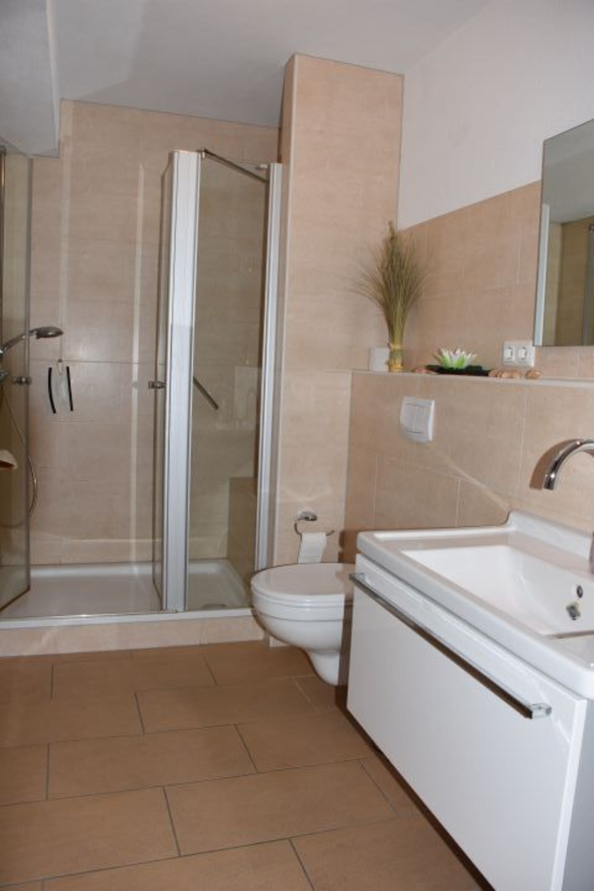 Die Wohnung ist mit einer modernen Küche und einem großen Duschbad, mit Sitzmöglichkeit und flachem, breitem Einstieg ausgestattet worden.