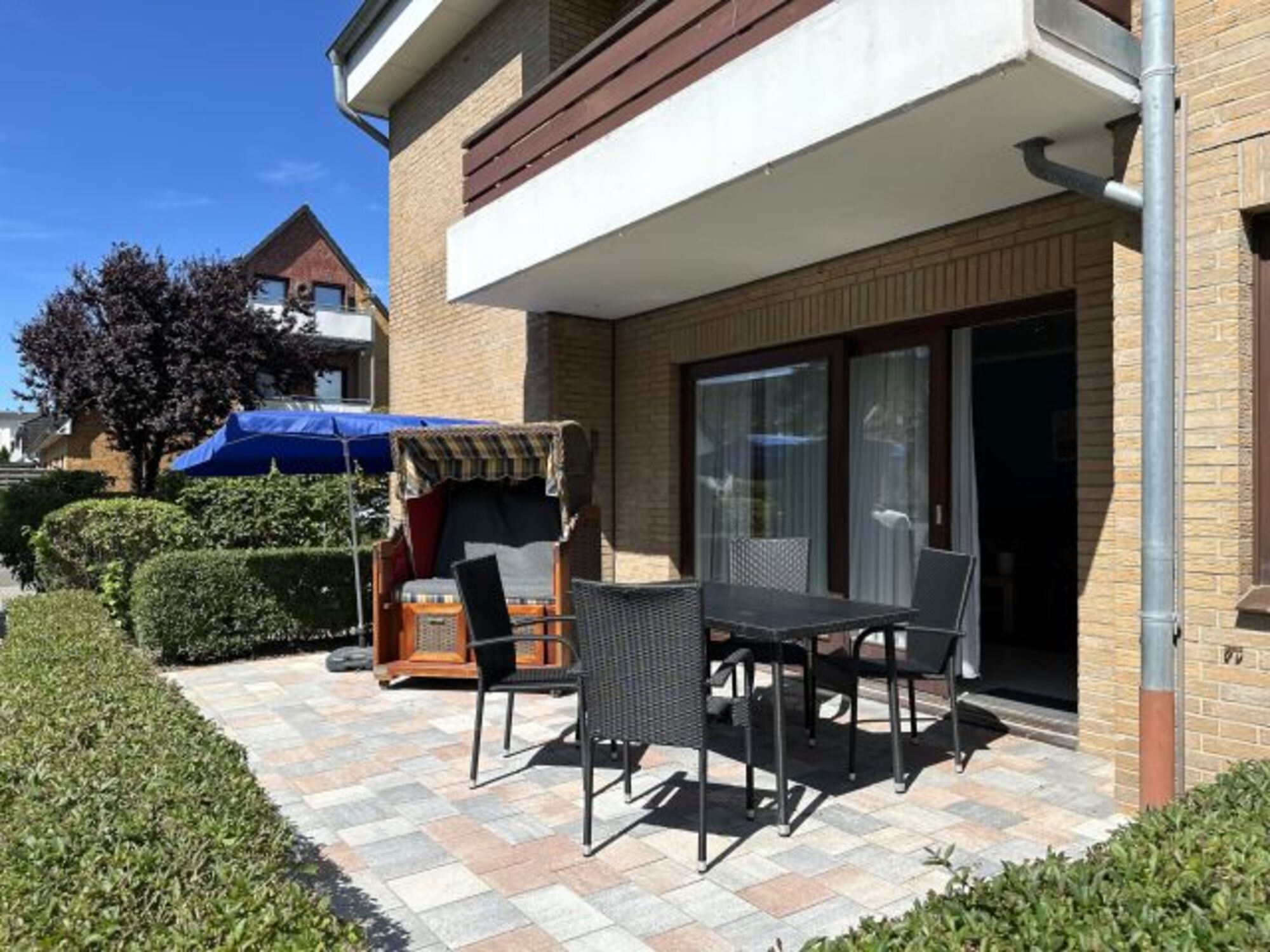 Die Wohnung verfügt über einen direkten Zugang vom Parkplatz zur großen Südterrasse mit Strandkorb, großen Gartentisch und 4 Stühlen, wo Sie an schönen Tagen herrlich entspannen können.