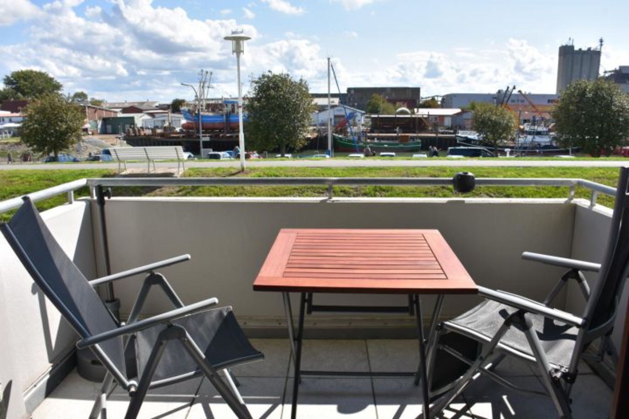 Beobachten Sie vom Balkon aus die einlaufenden Krabbenkutter im Hafen und genießen Sie dabei eine schöne Tasse Kaffee.