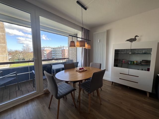 Genießen Sie die lauen Sommerabende auf dem möblierten Balkon und klönen Sie bei einem Glas Wein.