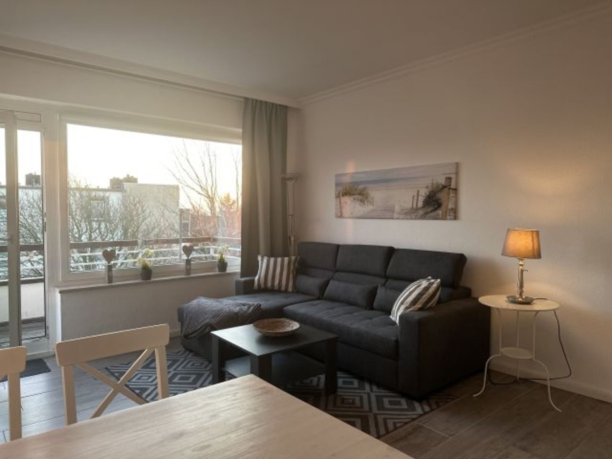Auf dem Balkon können Sie am Abend gemütlich sitzen und beobachten wie die Sonne am Horizont versinkt.