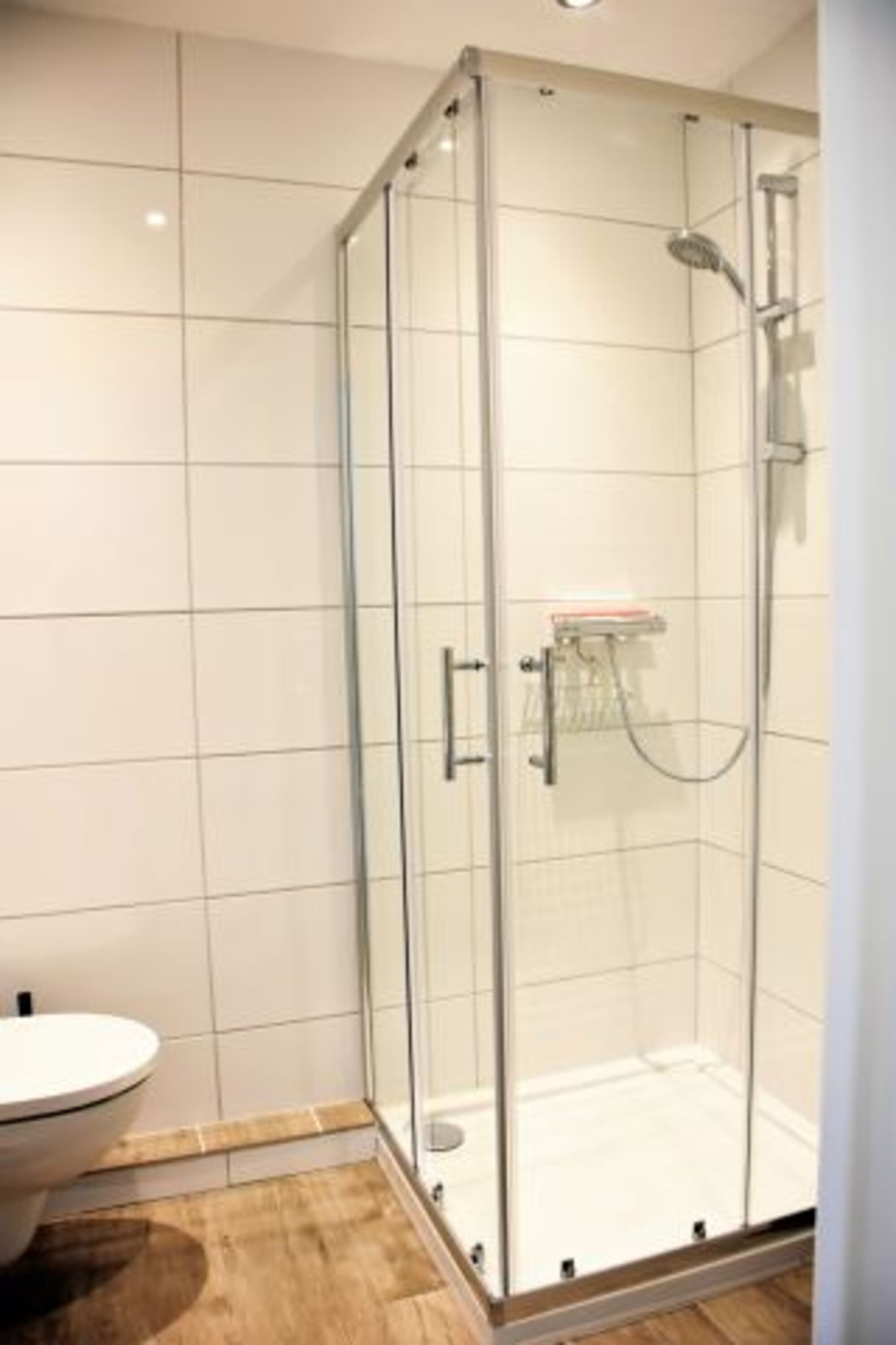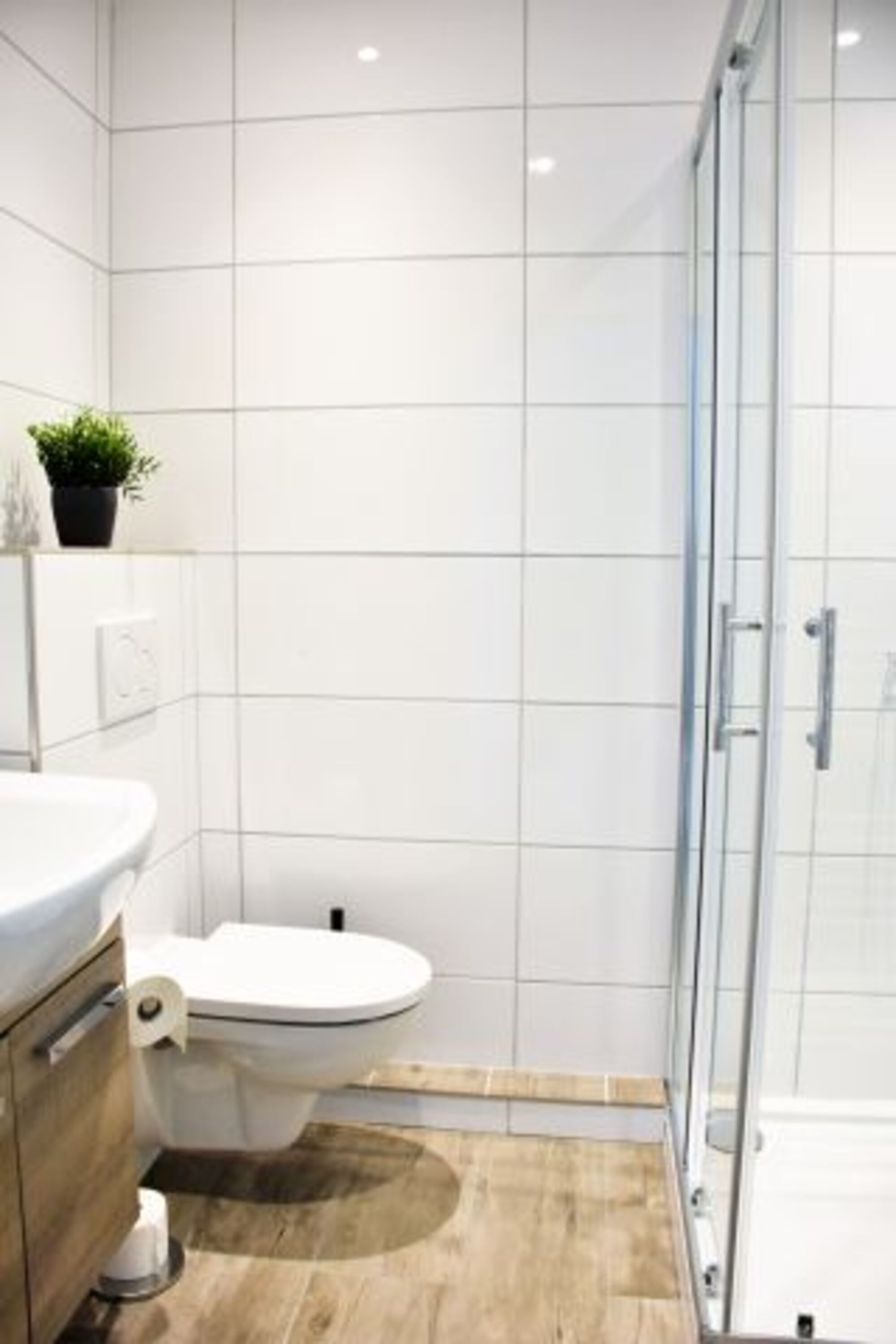 Das Duschbad ist modern und hell.