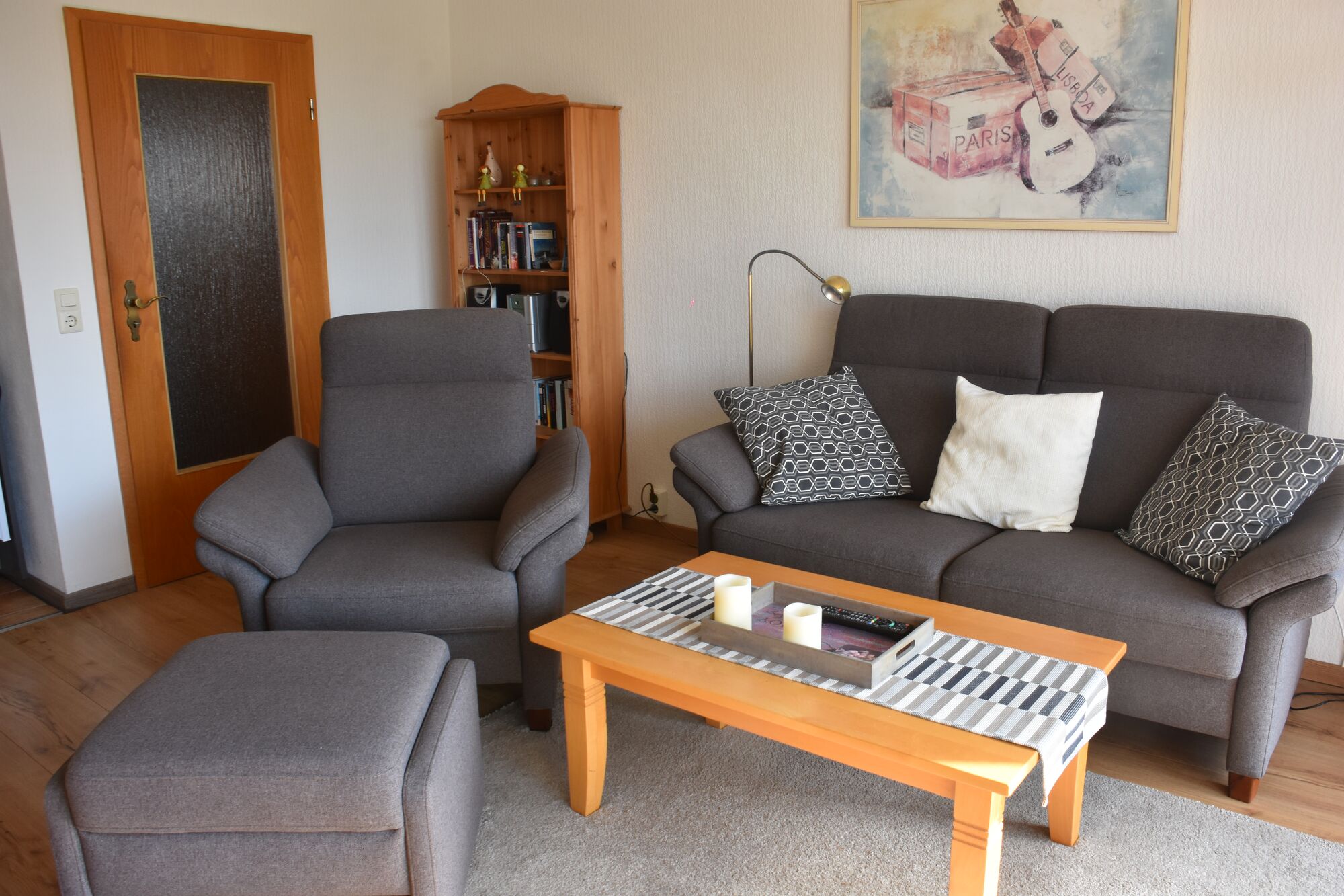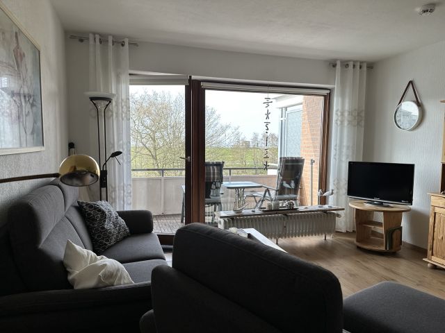 Unsere komfortable 2-Raumwohnung befindet sich im 2. OG des Haus Nordseeblick. Auf rund 45 qm finden bis zu 2 Personen genügend Platz zum Erholen.Genießen Sie gemütliche Abende im Wohnzimmer bei einem guten Glas Wein und einem Film. Zur Ausstattung gehören ein 2 Sitzer, ein Sessel mit Hocker, sowie ein Flachbild-TV und eine Stereoanlage.