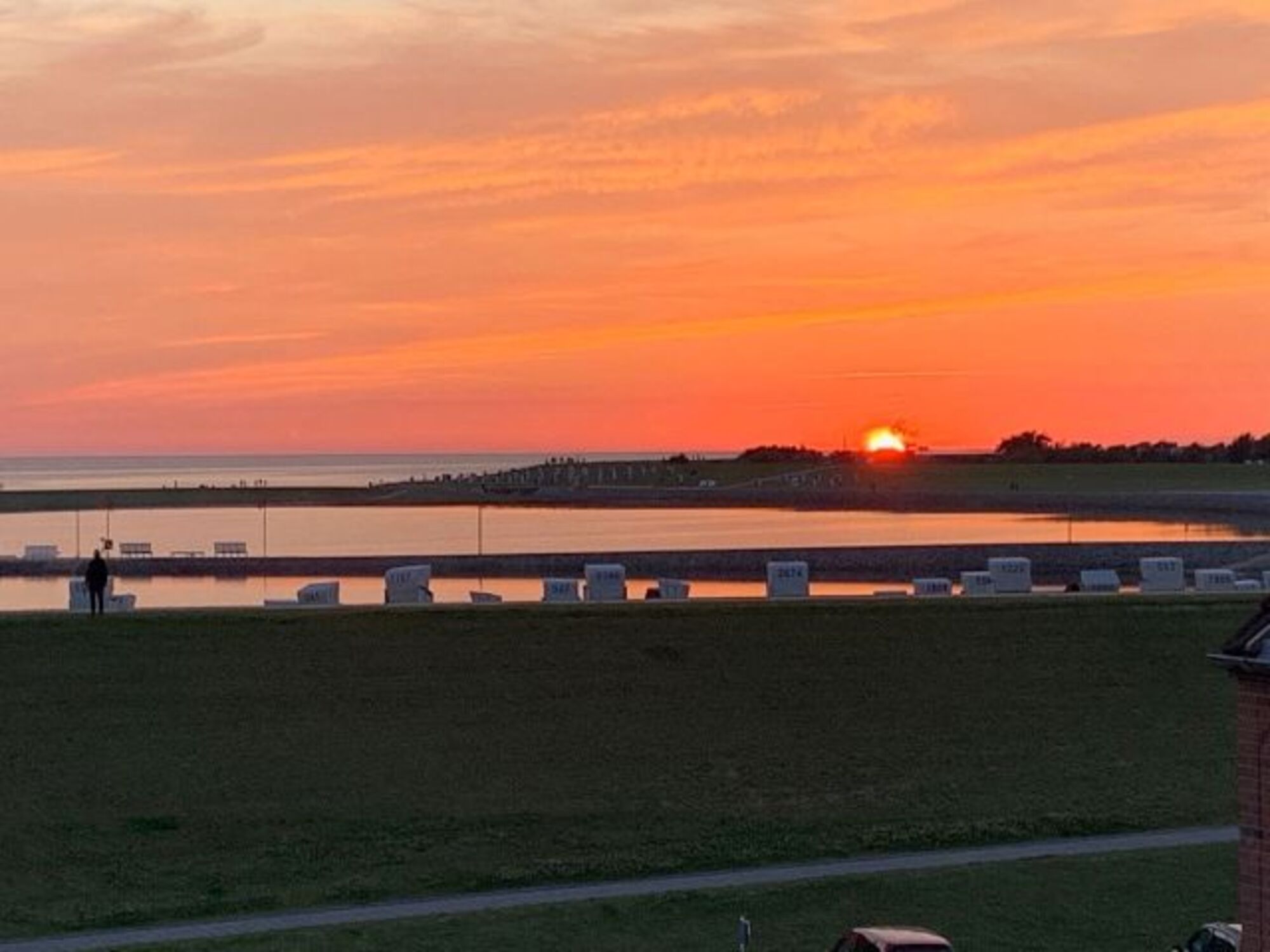 Genießen Sie den tollen Blick aufs Meer und lassen Sie sich an einem lauen Sommerabend vom Balkon aus vom berühmten Büsumer Sonnenuntergang verzaubern.
