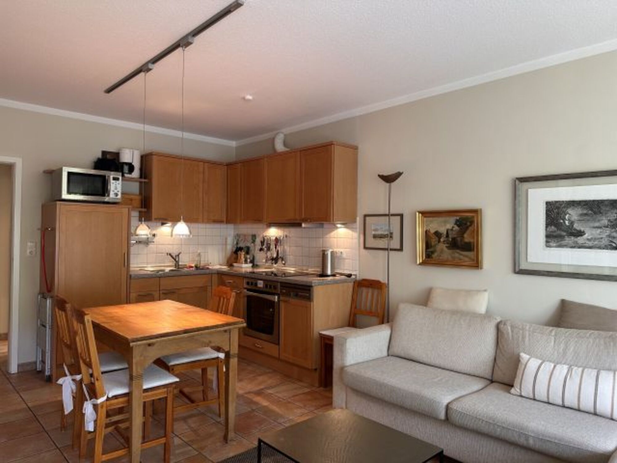 Das Wohnzimmer ist ausgestattet mit einer gemütlichen Couch, Flachbild-TV, Telefon und Internet, Esstisch mit 4 Stühlen, Küchenzeile (mit kompletter Kücheneinrichtung).
