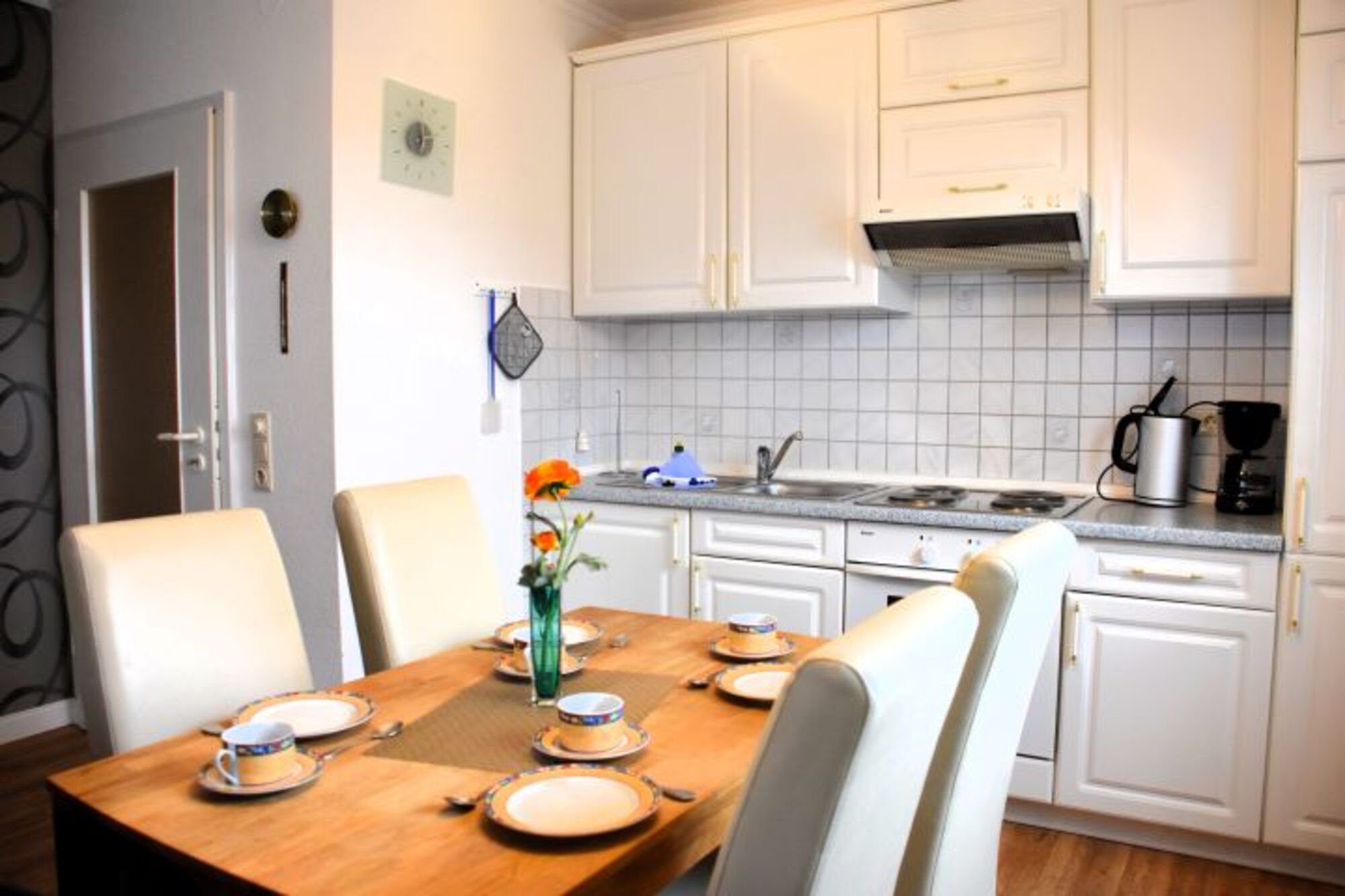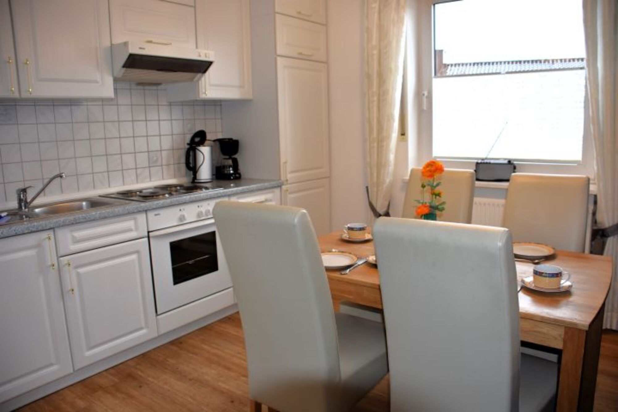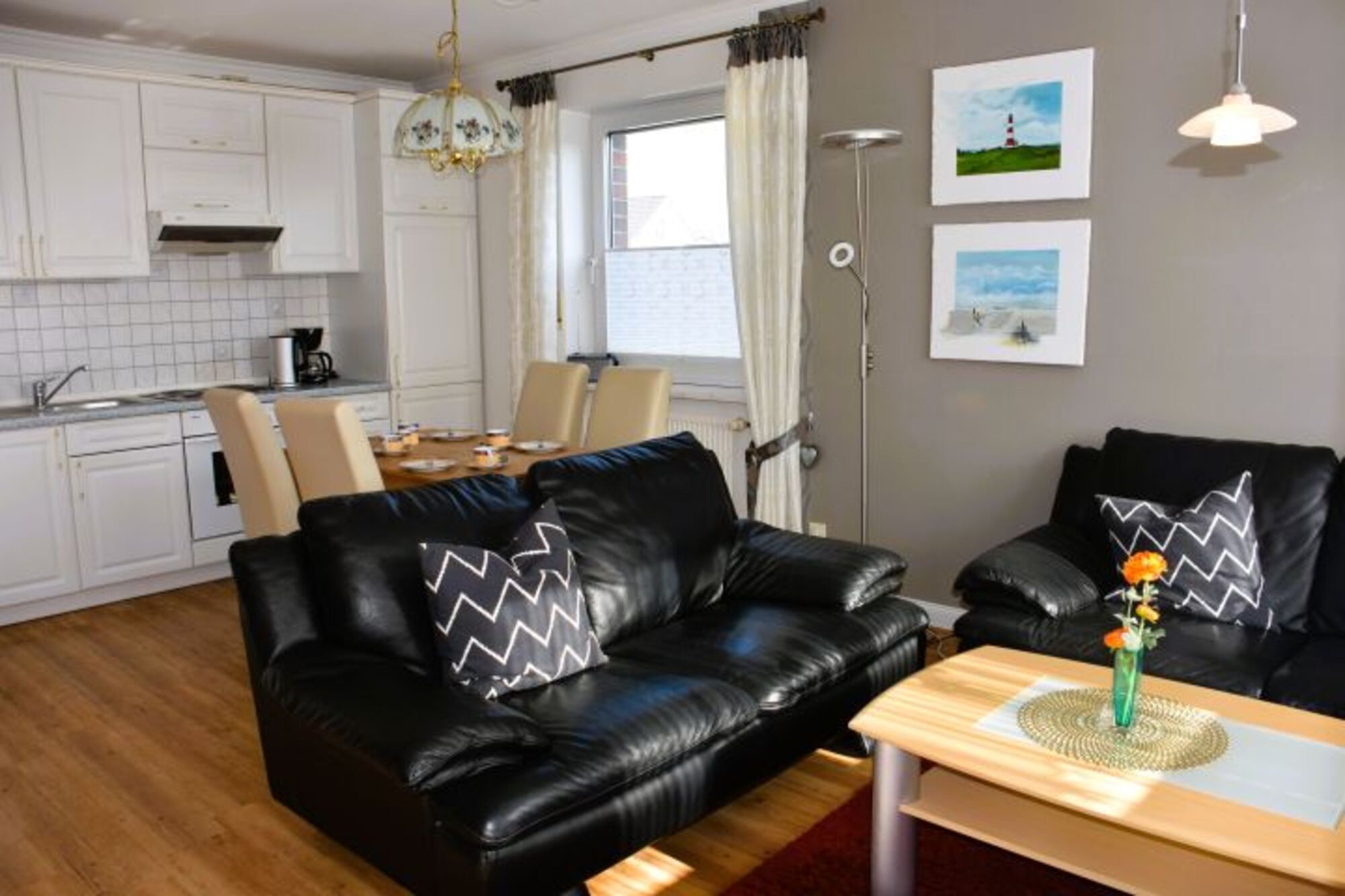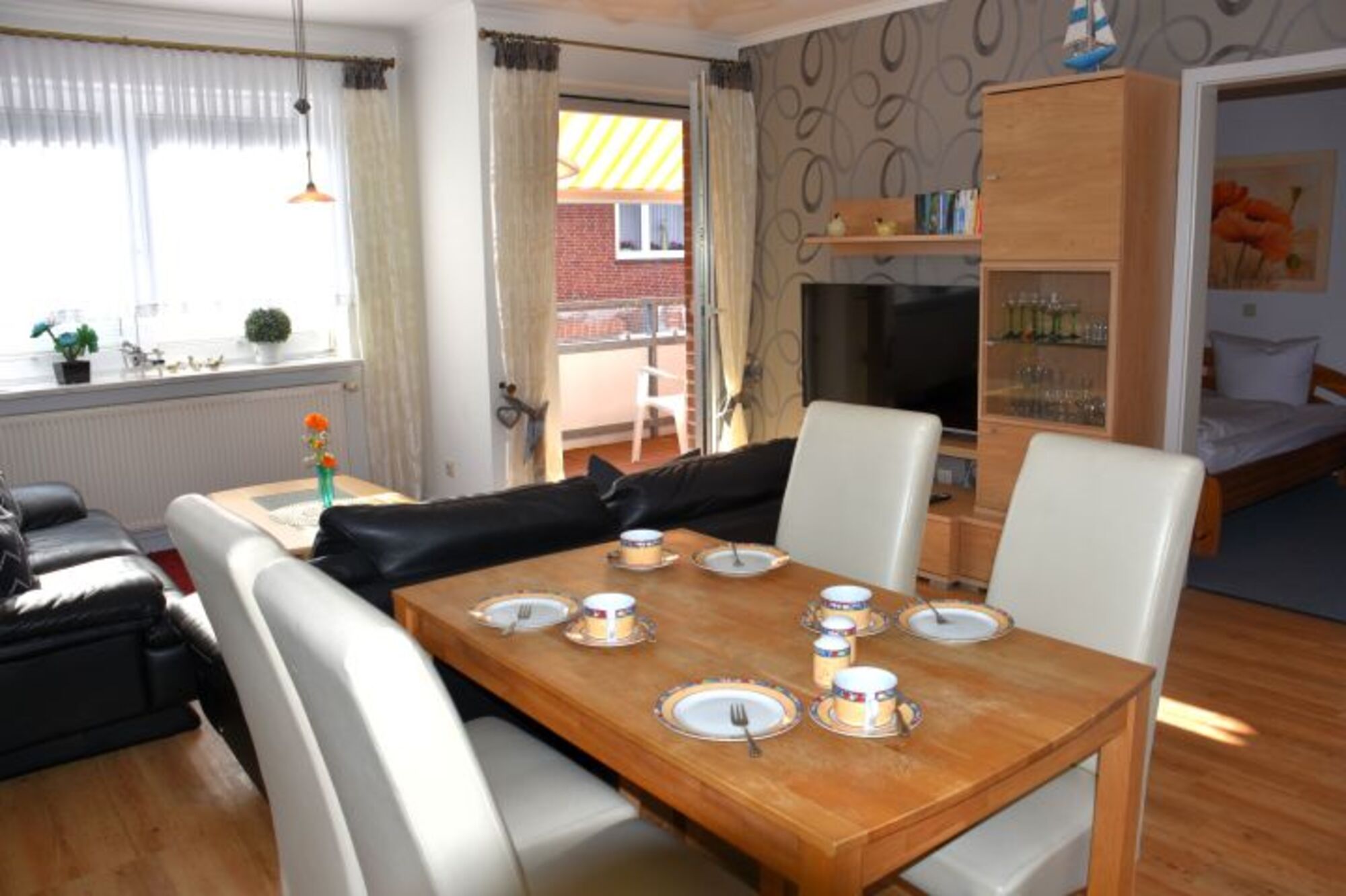 Unsere freundliche und lichtdurchflutete 3-Zimmer-Wohnung im 1. Stock bietet auf etwa 61 Quadratmetern ausreichend Platz für 2 bis 4 Personen. Dank der hervorragenden Lage benötigen Sie kein Auto: Die Fußgängerzone, die direkt zum Strand und Hafen führt, ist nur wenige Schritte entfernt.Das gemütliche Wohnzimmer lädt mit zwei bequemen Ledersofas und einem Flachbildfernseher zum Entspannen ein. Die offene Küchenzeile ist voll ausgestattet und bietet alles, was Sie für die Zubereitung von Mahlzeiten brauchen, inklusive Backofen und einer praktischen Essecke.
