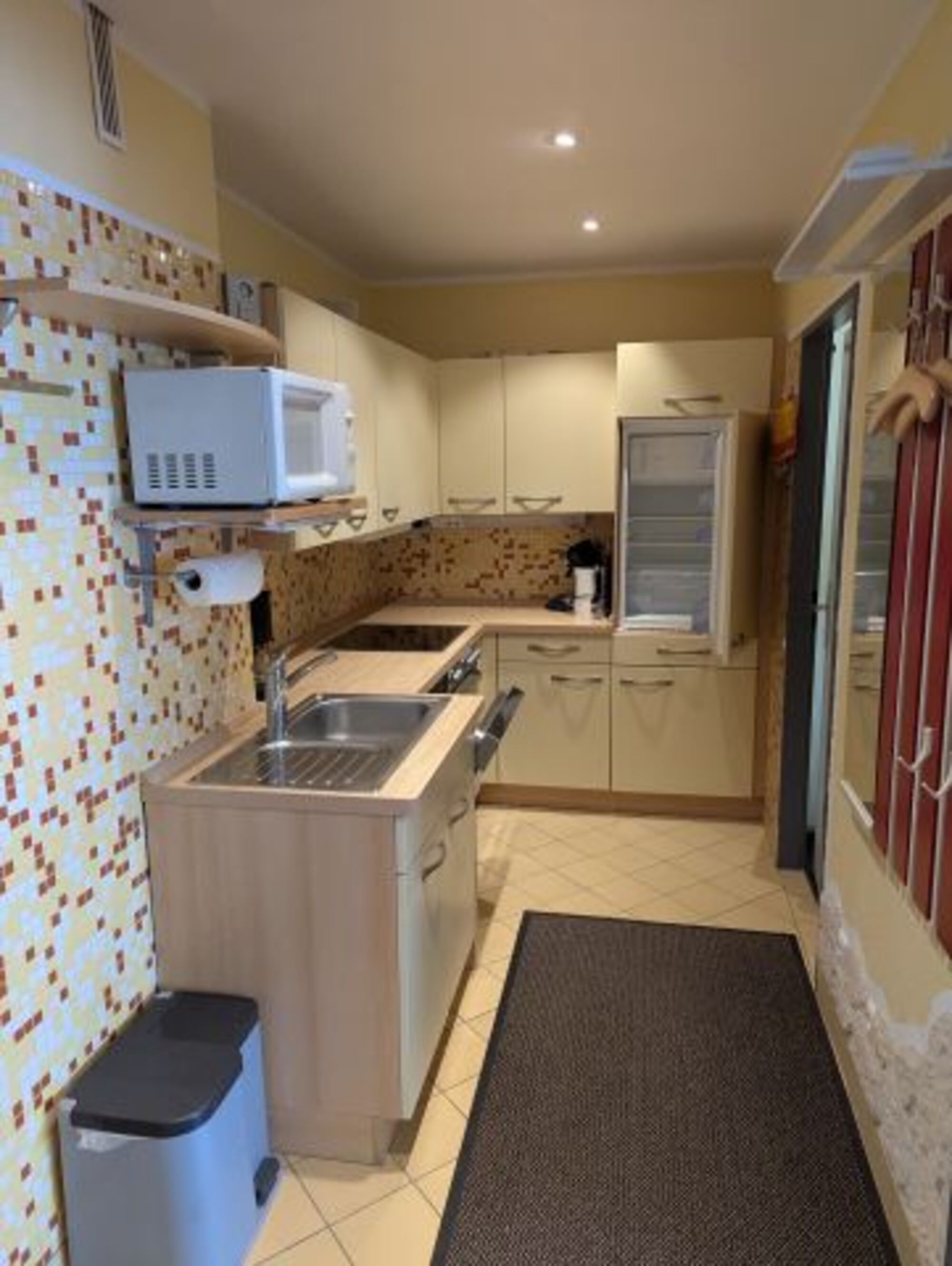 In unserer Küche werden Sie voraussichtlich nichts vermissen. Sie ist komplett ausgestattet, unter anderem mit Cerankochfeld mit 4 Kochfeldern, Umluftbackofen, Kühlschrank mit Gefrierfach***, Geschirrspüler, Mikrowelle, Kaffeemaschine, Wasserkocher, Eierkocher, Toaster, sowie Töpfe, Pfannen, div. Küchenutensilien, Geschirr , Besteck und Gläser für die unterschiedlichsten Getränke.