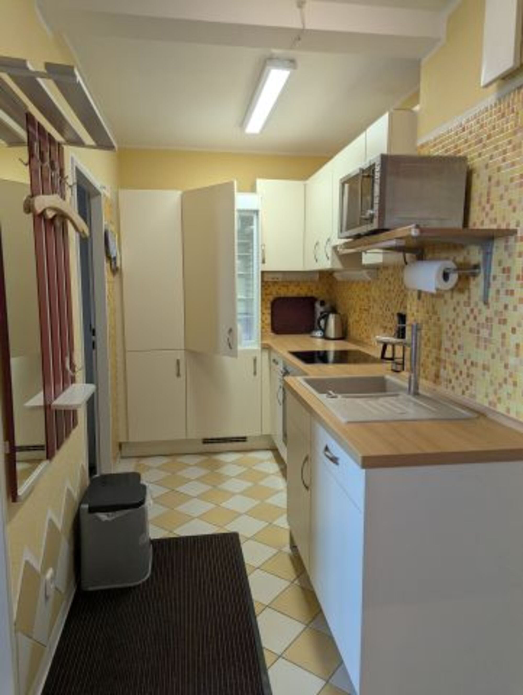 In unserer Küche werden Sie voraussichtlich nichts vermissen. Sie ist komplett ausgestattet, unter anderem mit Cerankochfeld mit 4 Kochfeldern, Umluftbackofen, Kühl-/Gefrierkombi, Geschirrspüler, Mikrowelle, Kaffee- und Kaffeepadmaschine, Wasserkocher, Eierkocher, Toaster, sowie Töpfe, Pfannen, div. Küchenutensilien, Geschirr , Besteck und Gläser für die unterschiedlichsten Getränke.