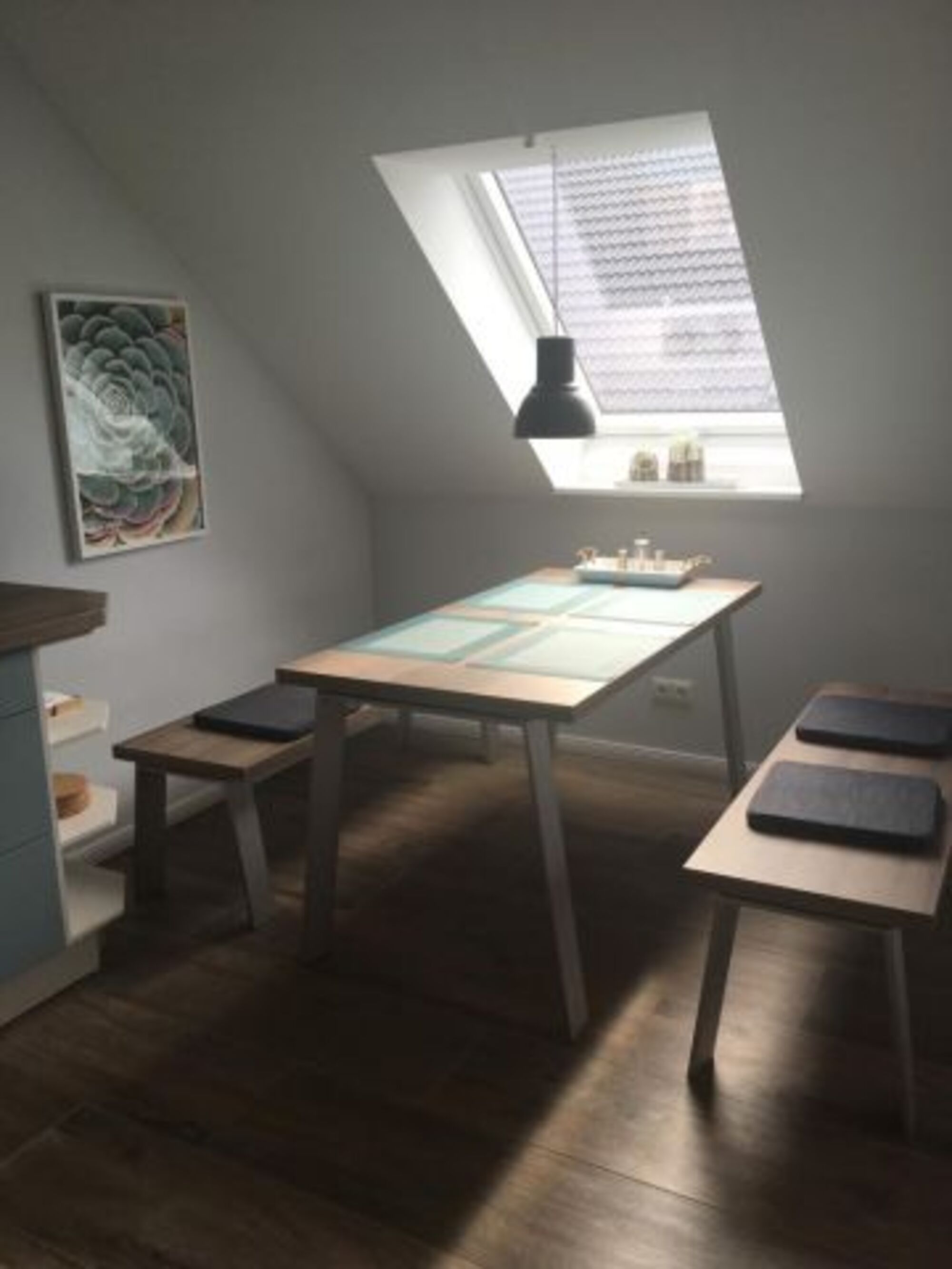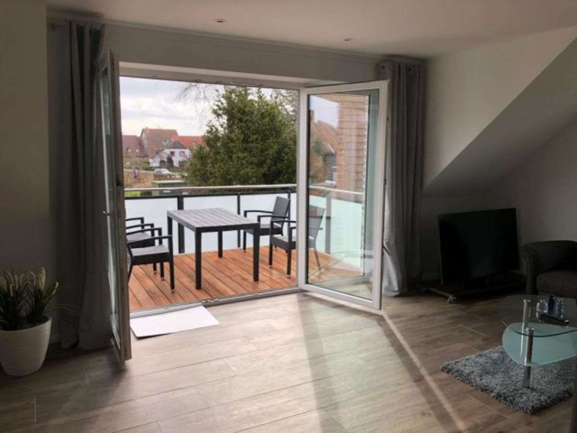 Vom Wohn- und Essbereich aus gelangen Sie nach draußen auf den Balkon.