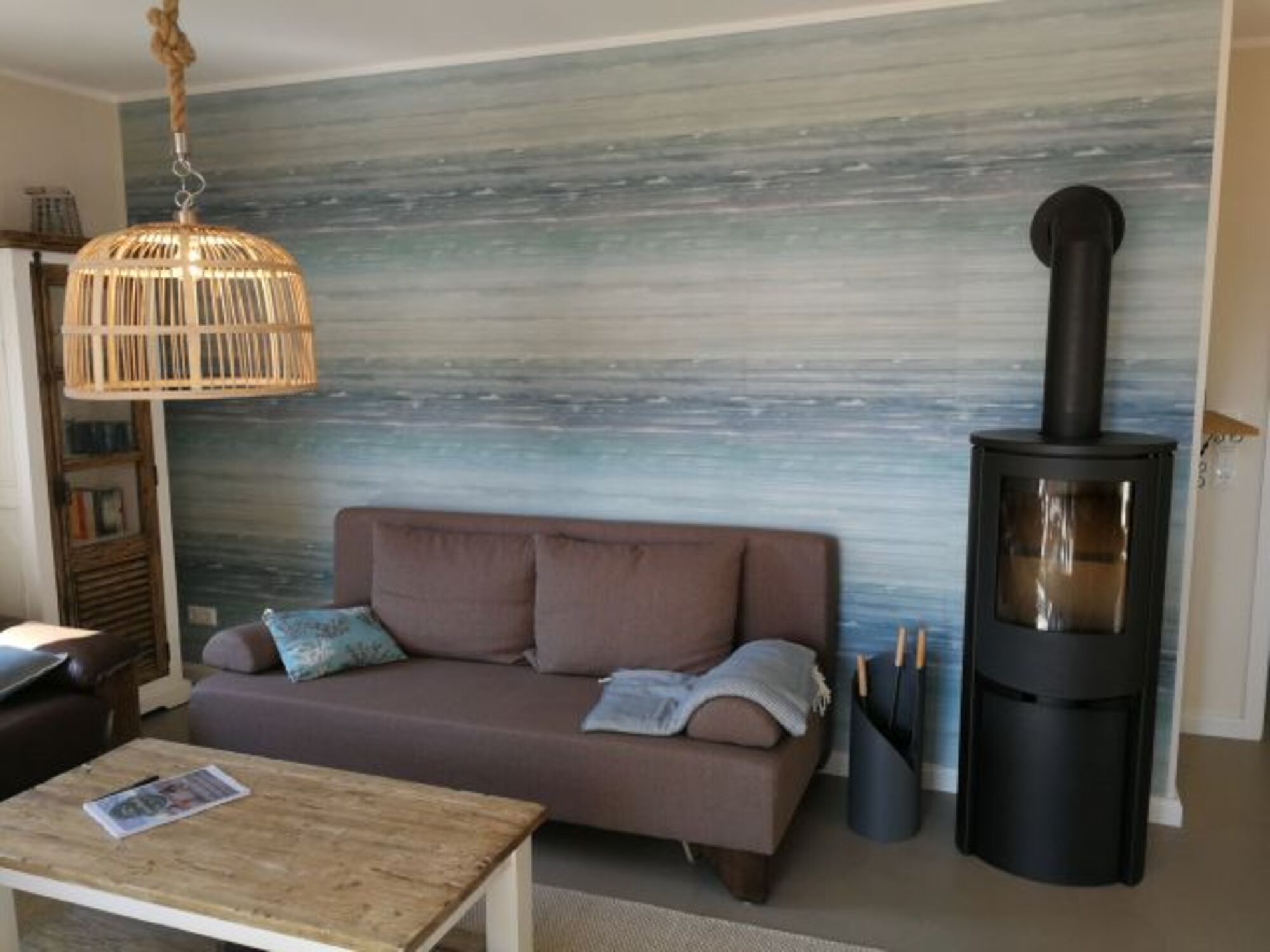 Eine zusätzliche Schlafmöglichkeit bietet die Schlafcouch im Wohnbereich. Ein Badezimmer mit großer Walk-In Dusche, einen Abstellraum mit Waschmaschine und Trockner, der große Wohn- und Essbereich mit Kaminofen und die Süd-West-Terrasse mit Gartenmöbeln und Sonnenliegen laden zum Entspannen ein.