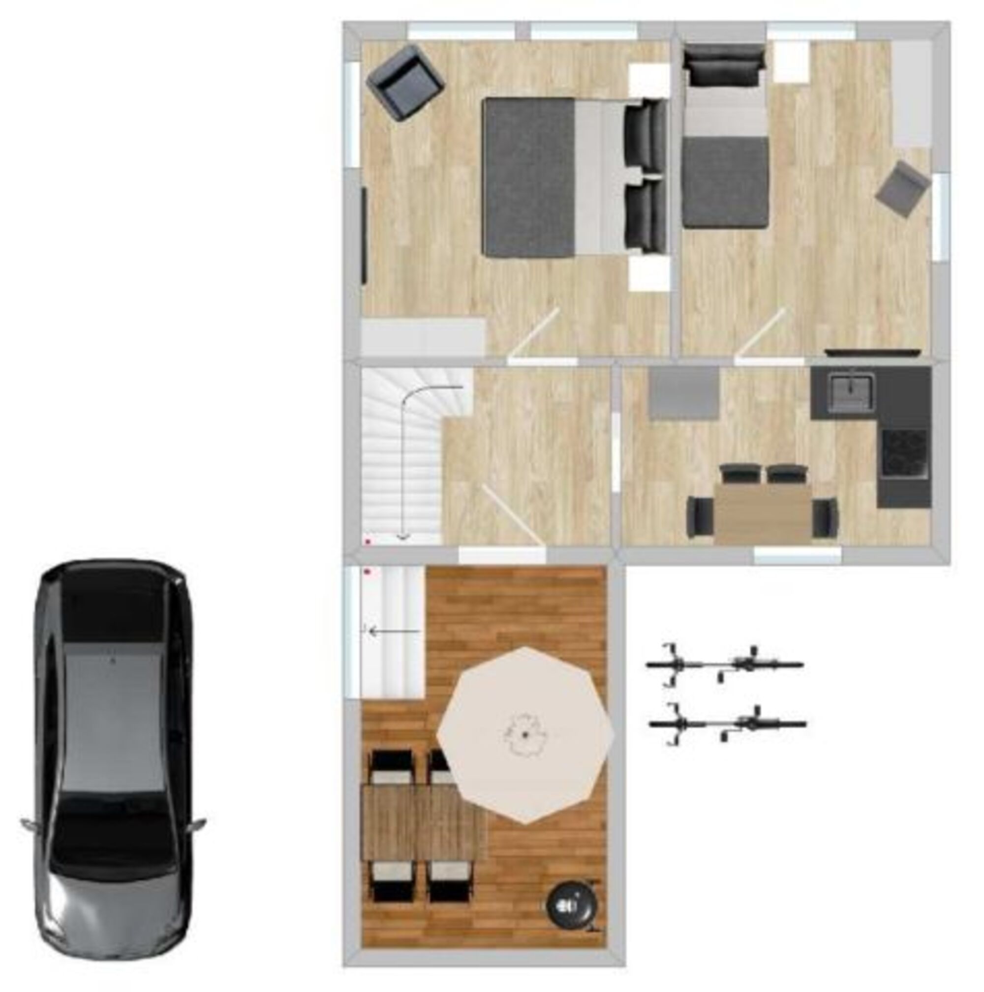 Direkt am Haus befindet sich Ihr PKW-Stellplatz, sowie zwei Fahrradständer.