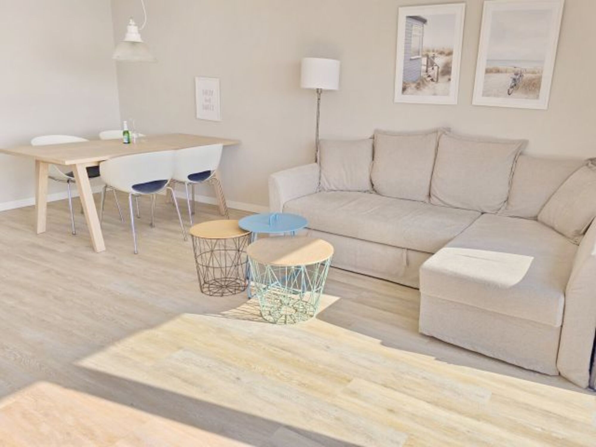 Im Hauptschlafzimmer finden Sie ein 180 x 200 cm großes Boxspringbett und einen großen Kleiderschrank. Ein gemütliches kleines zweites Schlafzimmer mit einem sehr schönen und bequemen skandinavischem Sofabett mit einer Schlafbreite von 140 cm ist ebenfalls vorhanden. Beide Schlafzimmer sind mit TV-Flatscreens sowie elektrische Außenrollos ausgestattet.