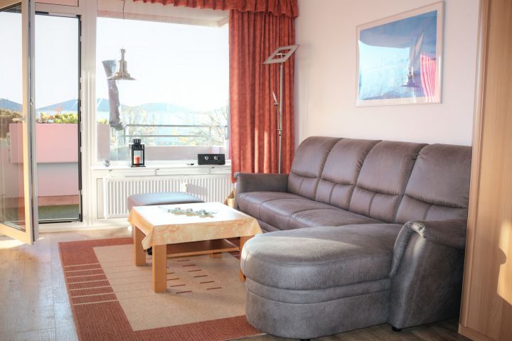 Die Wohnung hat einen möblierten Südbalkon zur Seeseite. Frühstück auf dem Balkon ist jederzeit möglich.