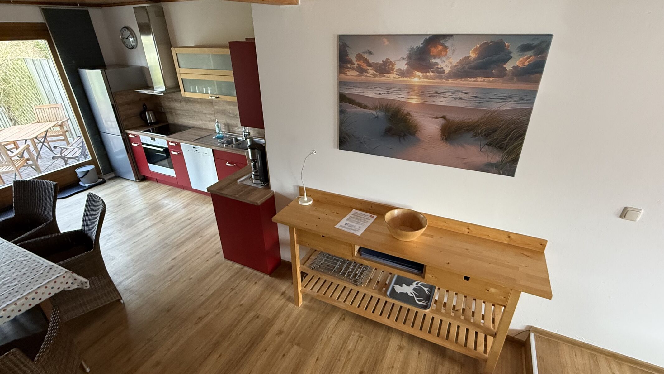 Im Garten befindet sich eine Unterstellmöglichkeit für Ihre Fahrräder. Ein Bollerwagen ist ebenfalls inklusive, damit fällt der Weg zum Strandkorb am Strand etwas "leichter".