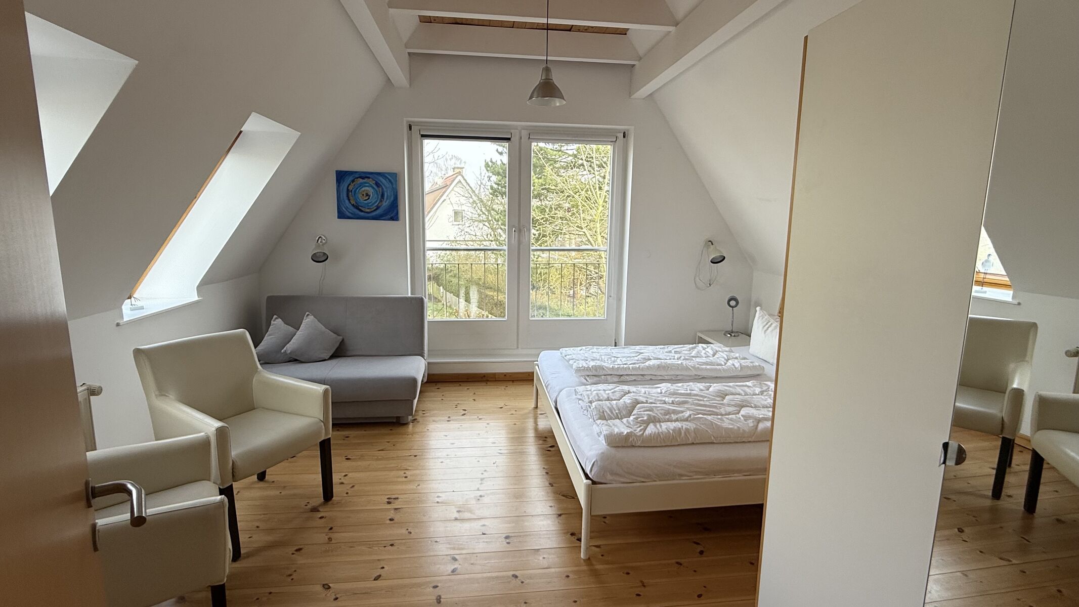 Die 1. Etage ist wie folgt aufgeteilt: 1 gemütliches Schlafzimmer mit Doppelbett, 1 weiteres Schlafzimmer mit Doppelbett und Schlafcouch (1,20 x 1,90), sowie ein separates Duschbad mit Dusche/WC und Fön.