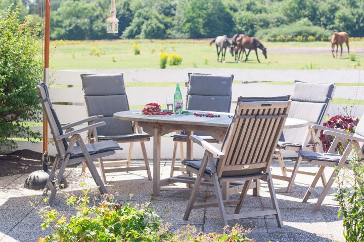 3 modernisierte Schlafräume geben Ihnen die Ruhe, die Sie brauchen und das charmant gestaltete Teepunschzimmer macht die friesische Kultur für Sie erlebbar. Auf der überdachten Terrasse können Sie lauschige Abendstunden verbringen und das Panorama des gepflegten Gartens auf sich wirken lassen. Dieser bietet Ihnen auf über 2000 m² ausreichend Platz, um die Seele so richtig baumeln zu lassen oder vielleicht um Ihrem Hund einfach nur den nötigen Auslauf zu gewähren – Urlaub mit Hund.