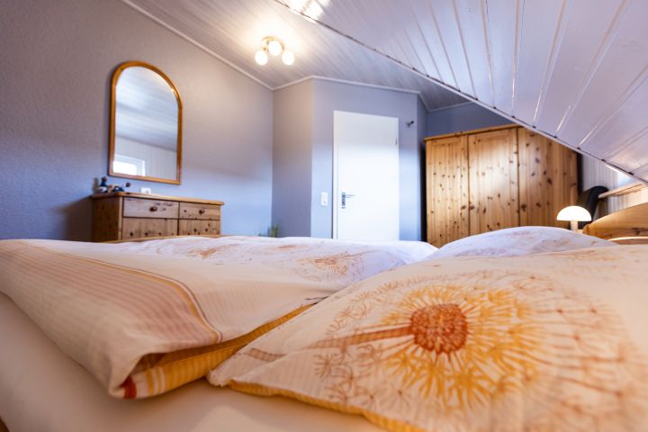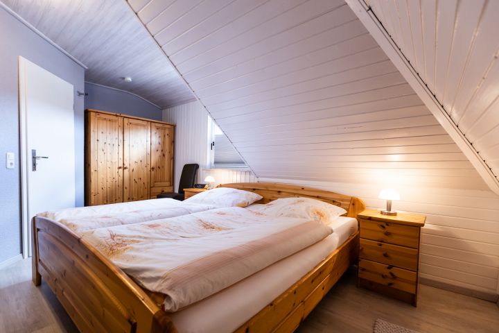 1 Schlafraum mit Doppelbett 2,00m x 2,0.0m Komfortlattenroste,Kleiderschrank 2x Nachttische mit Lampen,Radiowecker