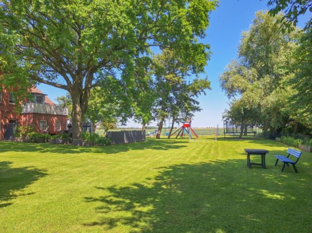 Unser etwa 2.800 m² großes Grundstück mit eigenem Kinderspielplatz mit diversen Schaukeln, Nestschaukel, Wippe, Turm mit Rutsche, Kleinkinderrutsche, 2 Sandkästen, großes Trampolin und kleinem Fußballtor ist sowohl für Kinder als auch für Eltern etwas schönes.Und sollte auch mal schlechtes Wetter sein, geht man einfach in unser Spielhaus (ca. 29 m² groß) mit diversen Spielgeräten für groß und klein wie z.B. elektronischer Dartscheibe, Kinder-Magnet-Dartscheibe oder 2 Tischfußballspiele sowie vielen anderen Spielmöglichkeiten.