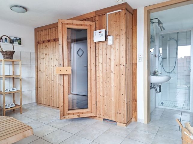 Wer möchte kann auch mal in die Sauna (gegen Gebühr) in den extra dafür angelegten Holzhütte im Garten. Das Saunahaus verfügt über ein eigenes Badezimmer mit Dusche und WC.
