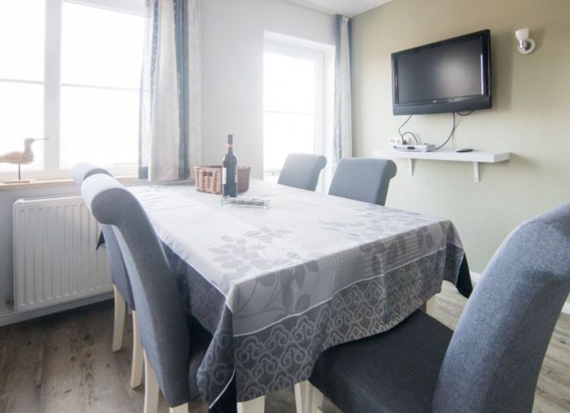 Die beliebte Fewo. Gröde befindet sich im Gästehaus Uthörn im 1.OG. Sie wird als Nichtraucherwohnung ganzjährig mit bis zu 5 Personen belegt. Zur Wohnung gehören ein Duschbad, zwei getrennte Schlafzimmer mit einem Doppelbett und drei Einzelbetten, eine helle, geräumige Wohnküche, eine bestuhlte Terrasse, ein Parkplatz und ein kostenloser Internetzugang.Die Kurzform: Helle, freundliche und moderne Wohnung ideal für Familien oder komfortabel für Paare ohne Haustier.