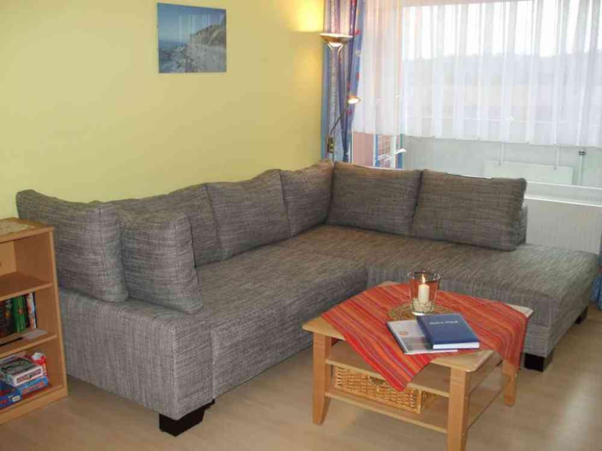 Im Wohnbereich befinden sich eine Sitz- und eine Essecke, ein TV/SAT sowie eine Stereoanlage mit CD und DVD. Der Balkon ist vom Wohnbereich aus erreichbar, von dort schauen Sie über den Binnensee.