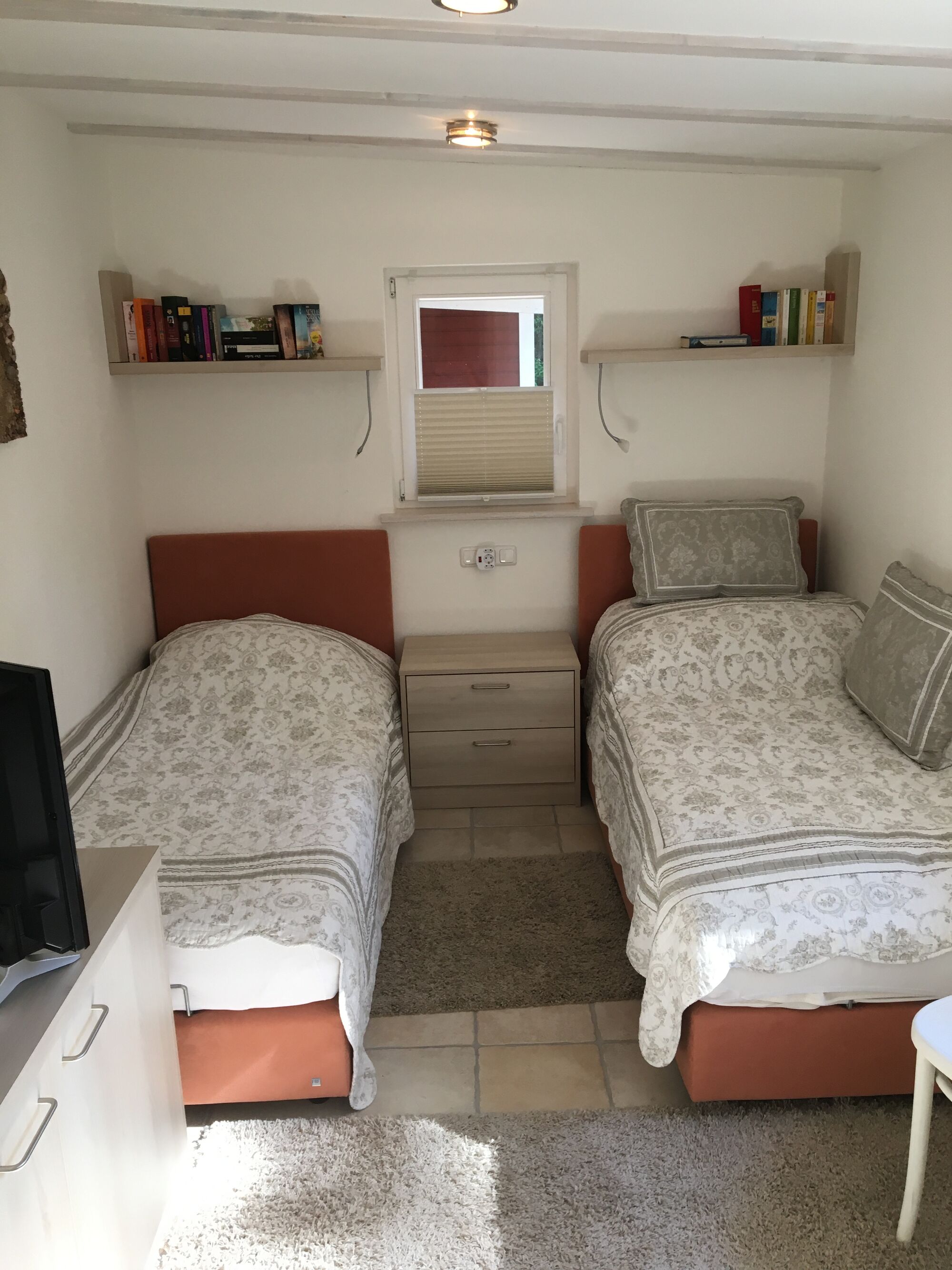 Das Besondere: Im Garten, direkt neben dem Ferienhaus, liegt das komfortable, kleine Gästehaus mit 2 Betten, Badezimmer mit Dusche und Badewanne sowie separatem WC.