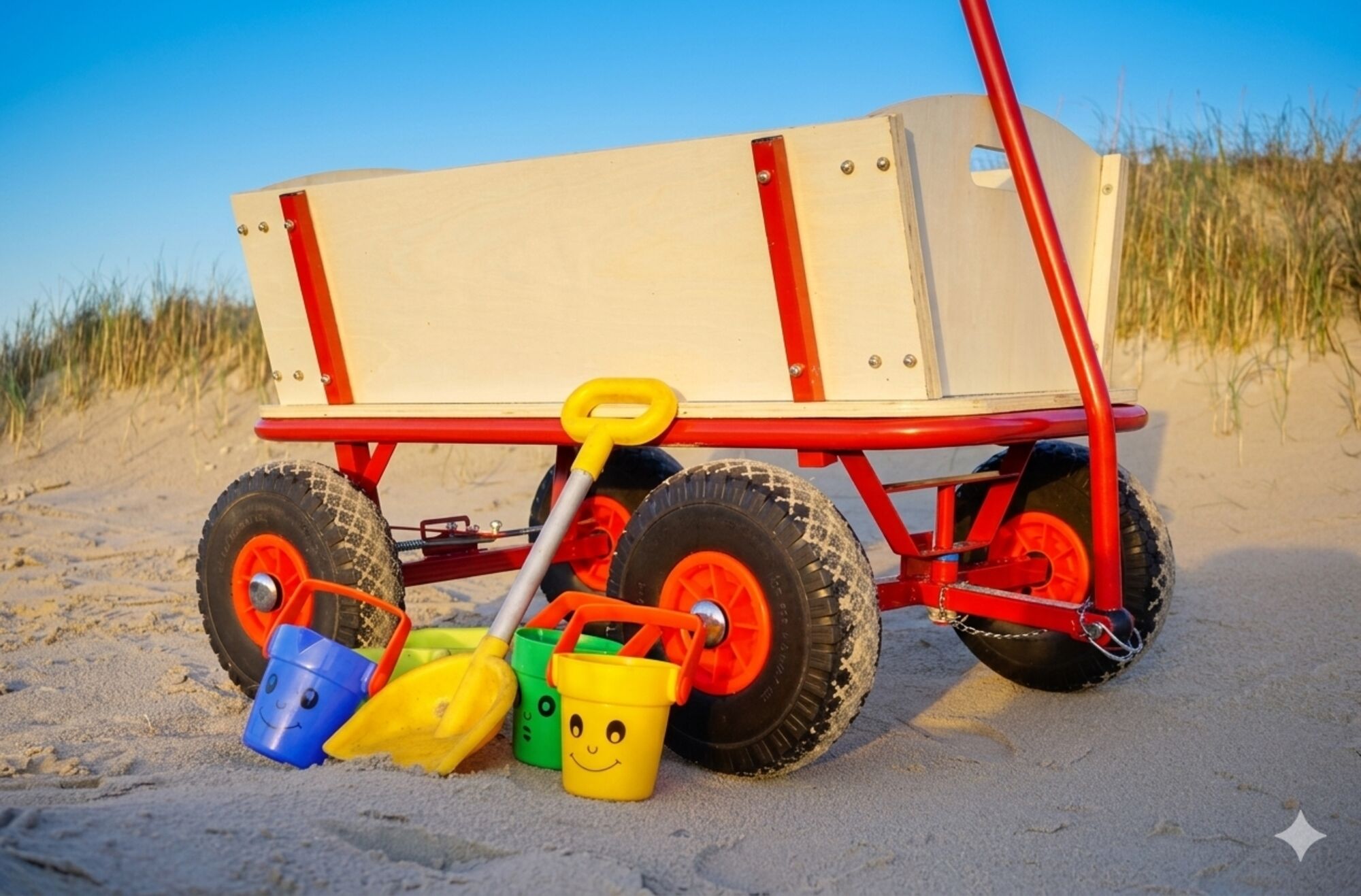 Ein Bollerwagen ist auf Anfrage kostenfrei gegen eine Kaution von 30,- Euro erhältlich.